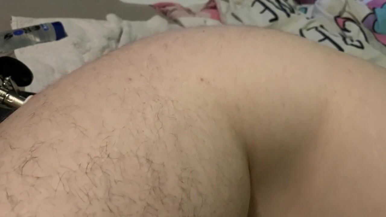 Trans guy moans from being fucked by machine and using satisfyer