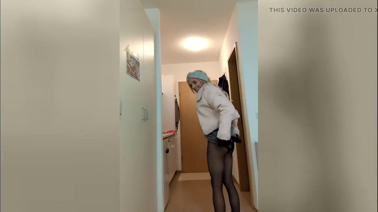 Student fucks tranny girl in her pantyhose and cums over her nylon ass!