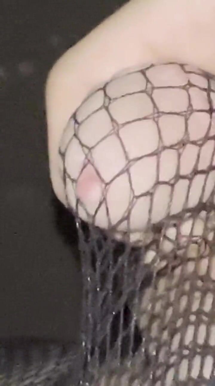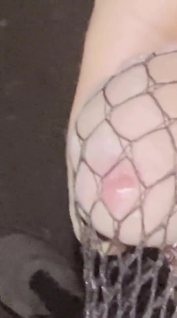 Night Walking in Pantyhose Fishnets Close Road Teen Boy Flash No Pants