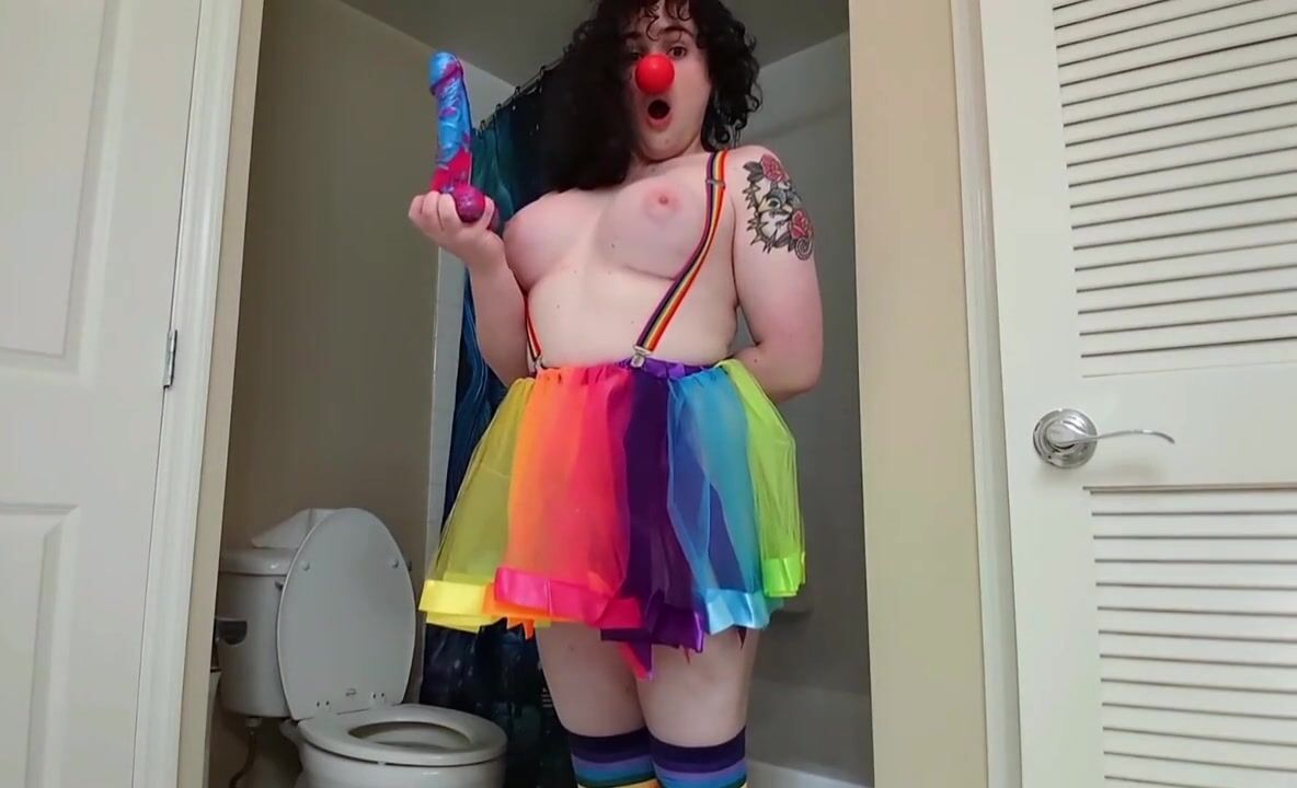 Trans Clown Girl Stuffs Clussy With Huge Cock And Cums