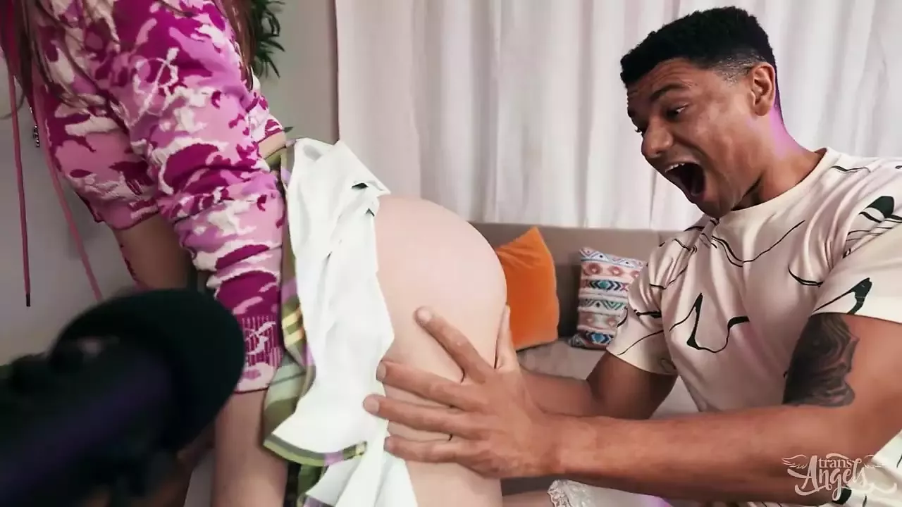 Panther Cat & Anne Antonela, 2 very beautiful horny TS share a big white cock (Ana...