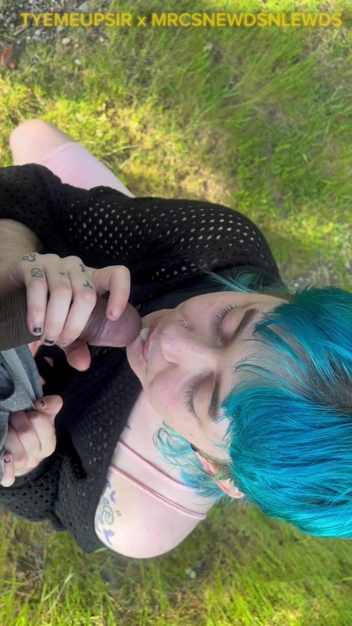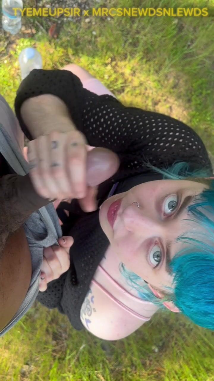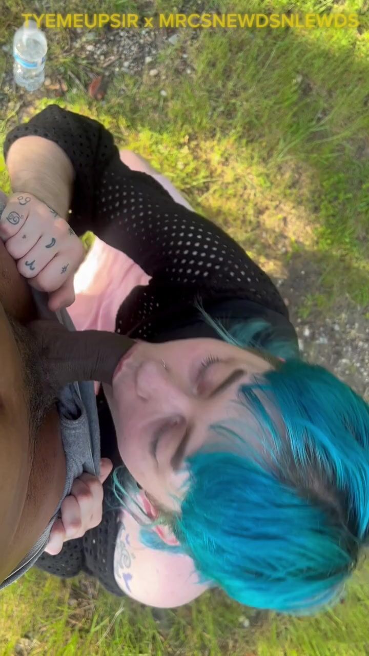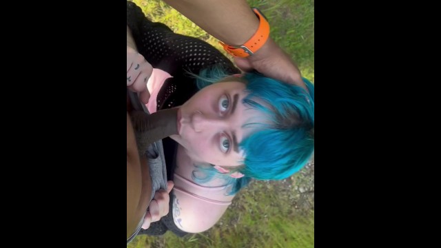 Femboy deepthroats on public trail