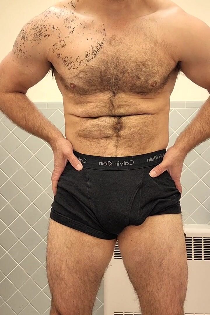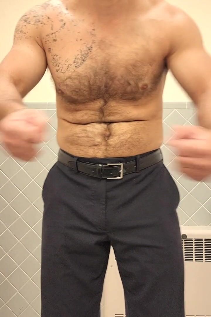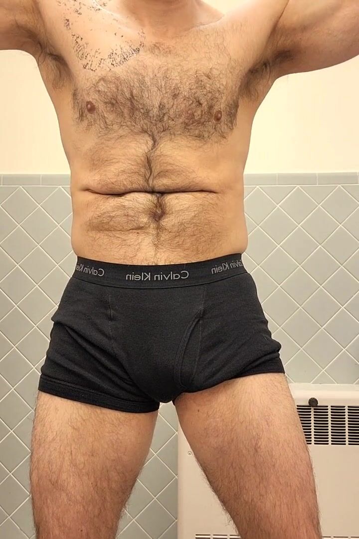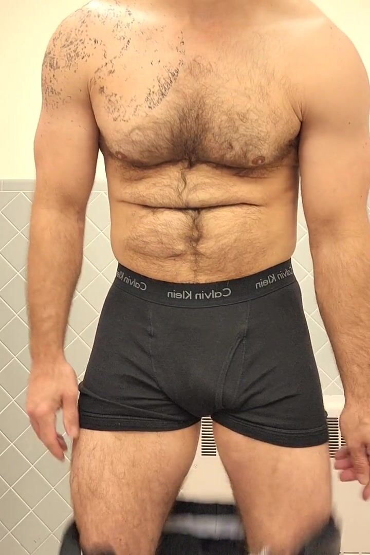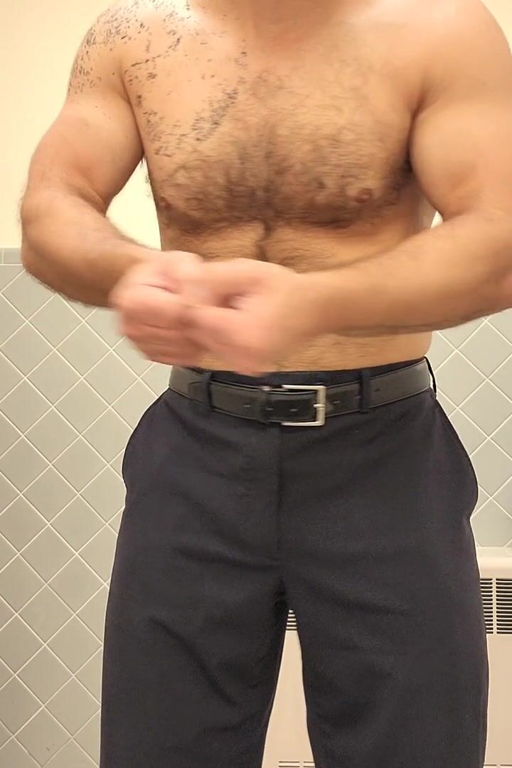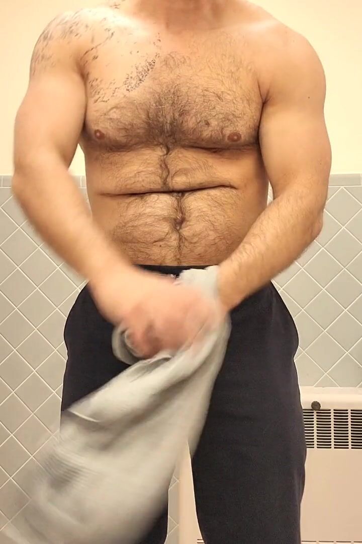 HAIRY MUSCLE BEAR STRIPPING AND FLEXING