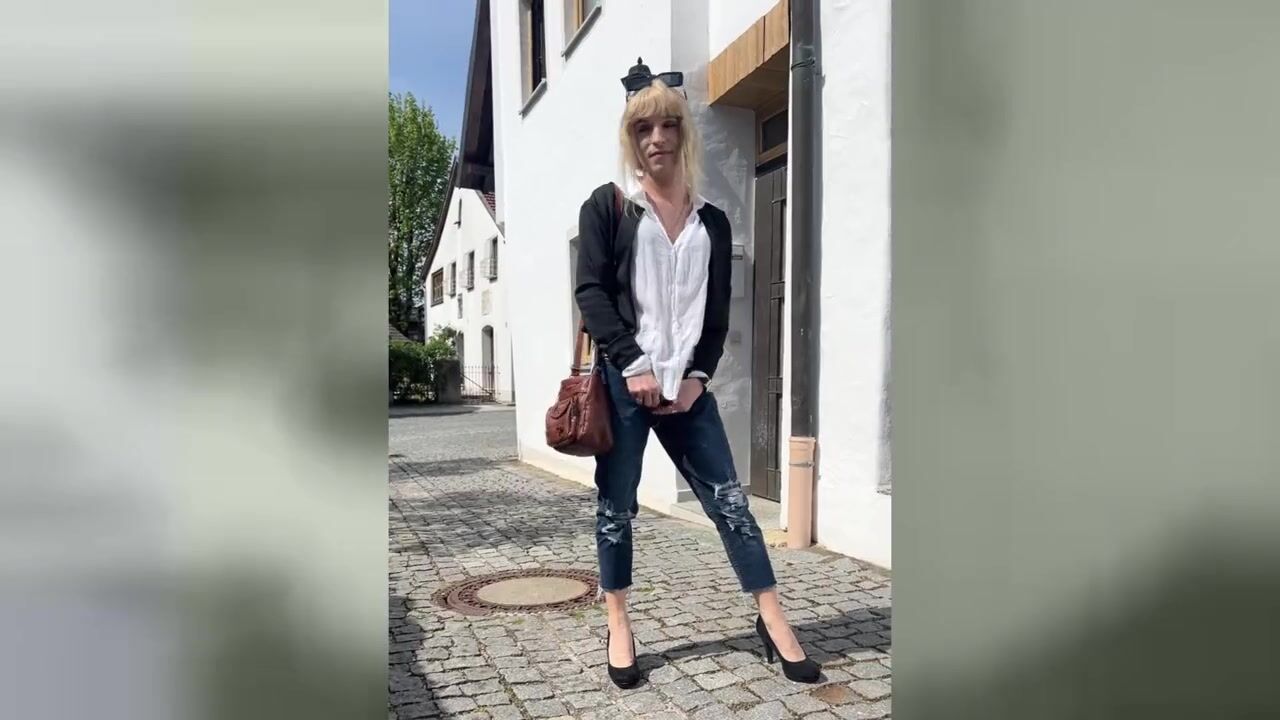 Hot insights because of zipper jeans! Tranny girl cums on public park bench!