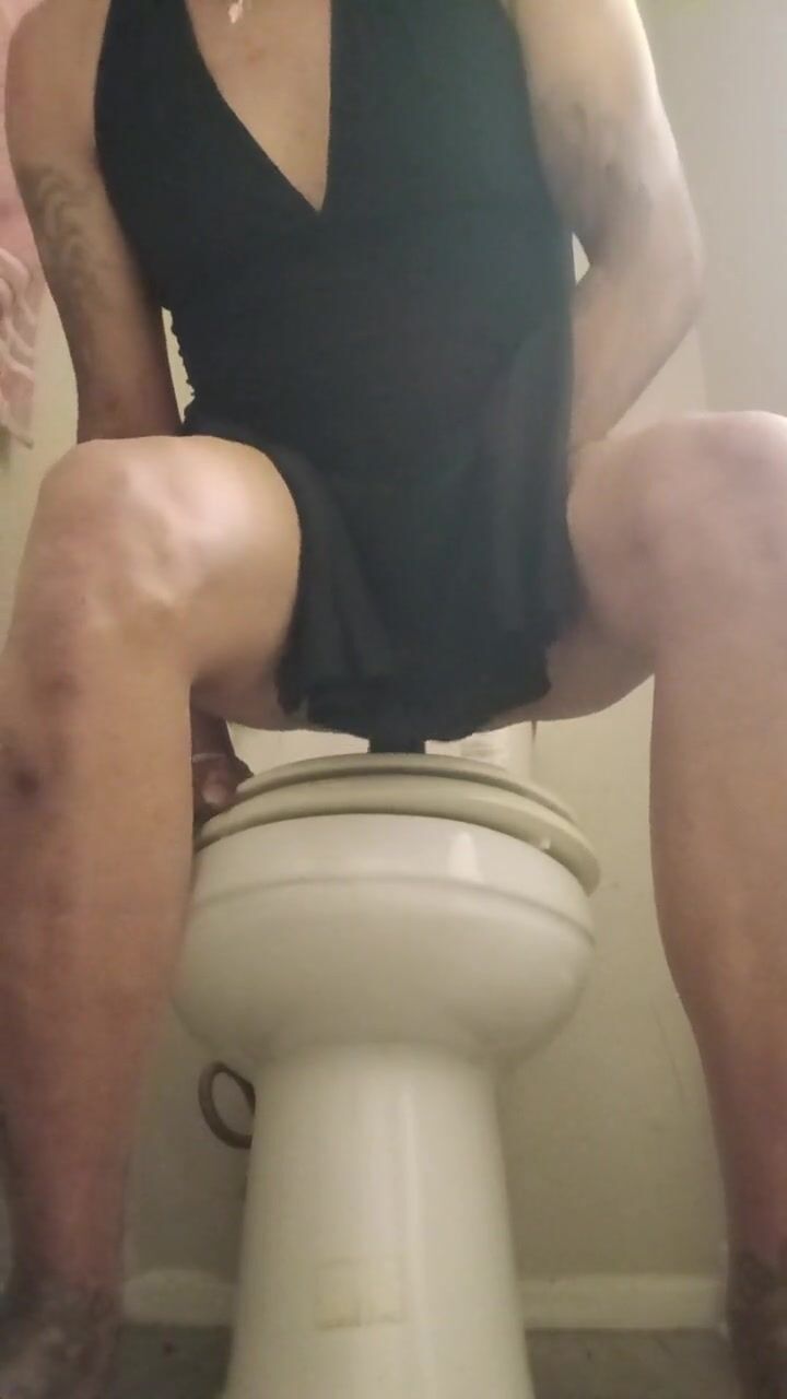 Sexy latina femboy in cute dress takes a ten inch dildo