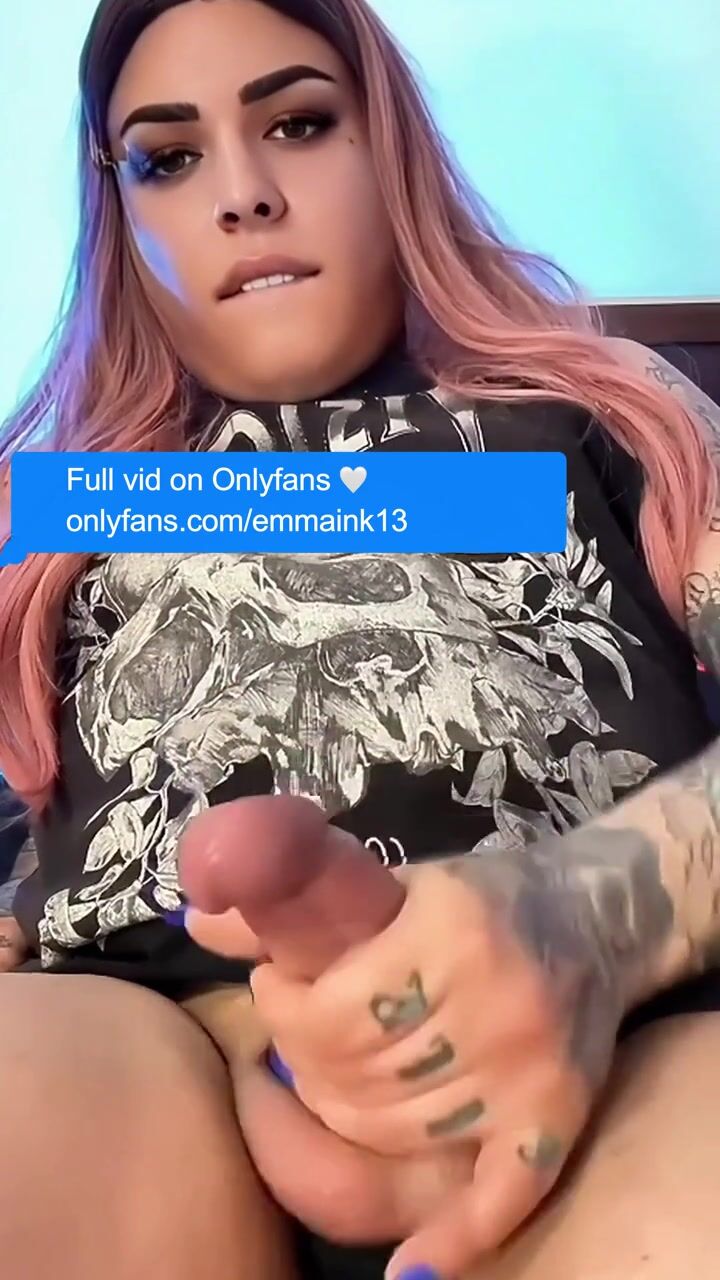 Beautiful tattooed trans girl masturbates and has incredible cumshot