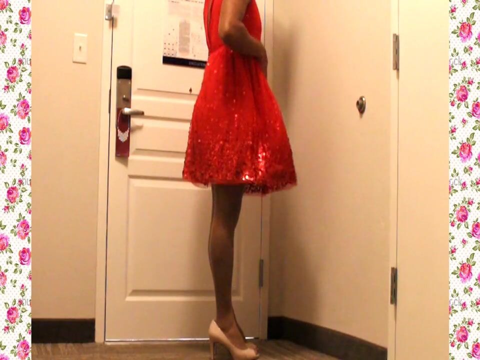 A 1950's SISSY DANCE FOR HER HUSBAND WEARING A PARTY DRESS