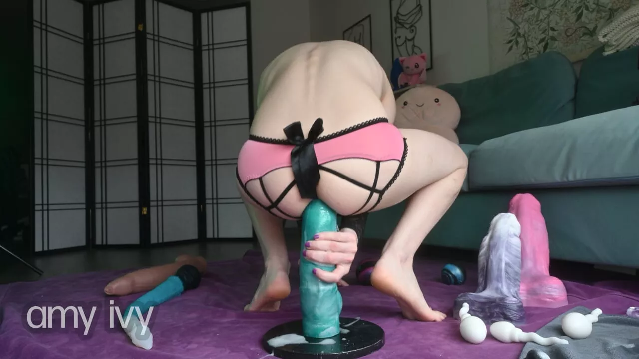 riding my massive dildo, XXXCALIBUR from hankey's toys!