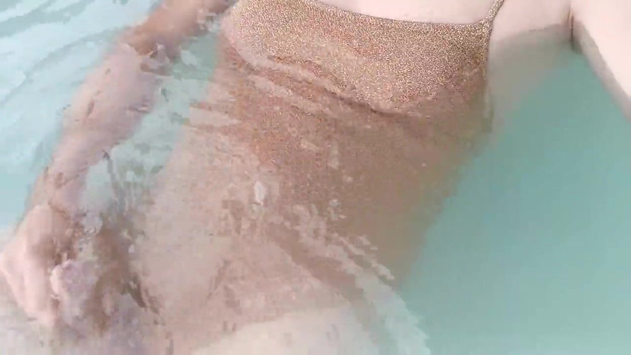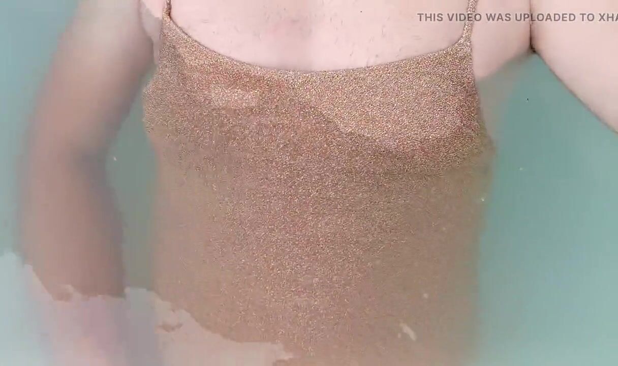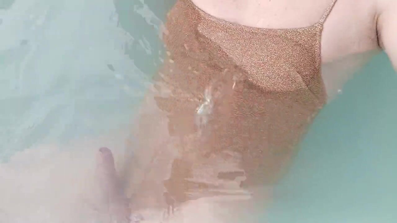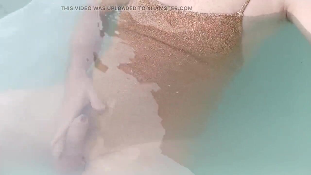 Sissy on sexy gold shiny swimsuit in jacuzzi