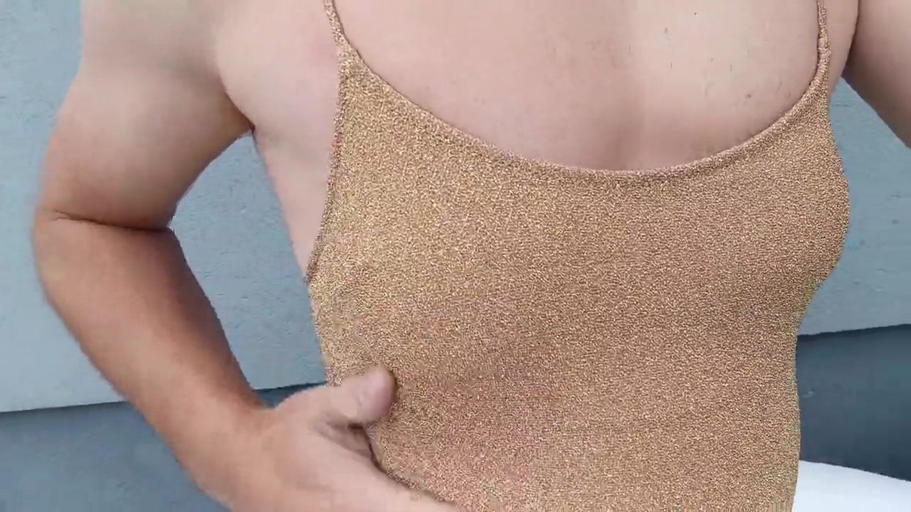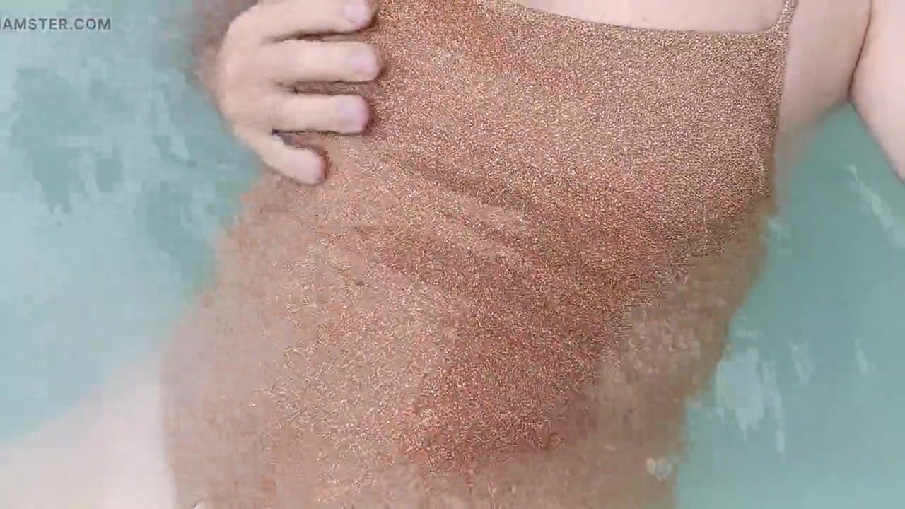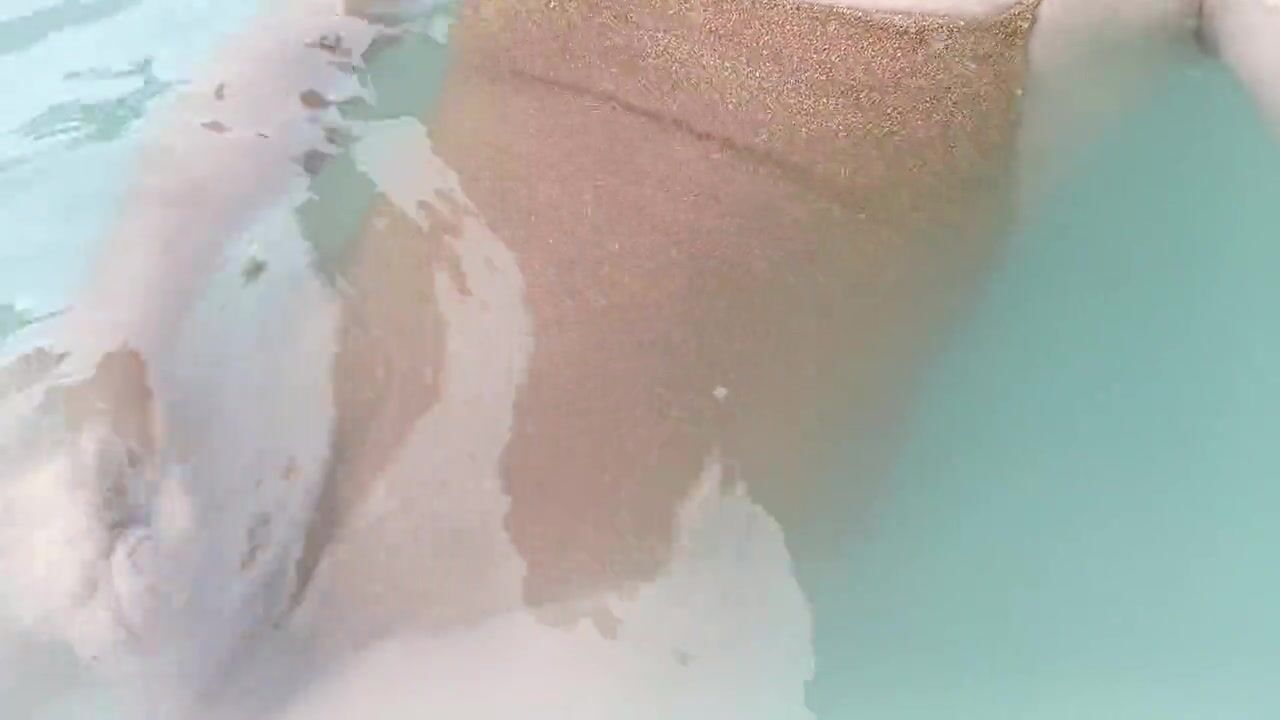 Sissy on sexy gold shiny swimsuit in jacuzzi