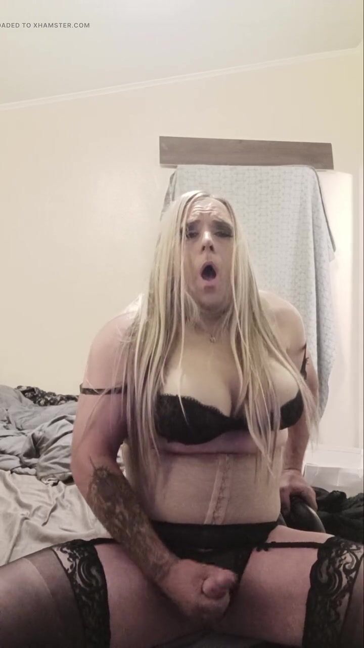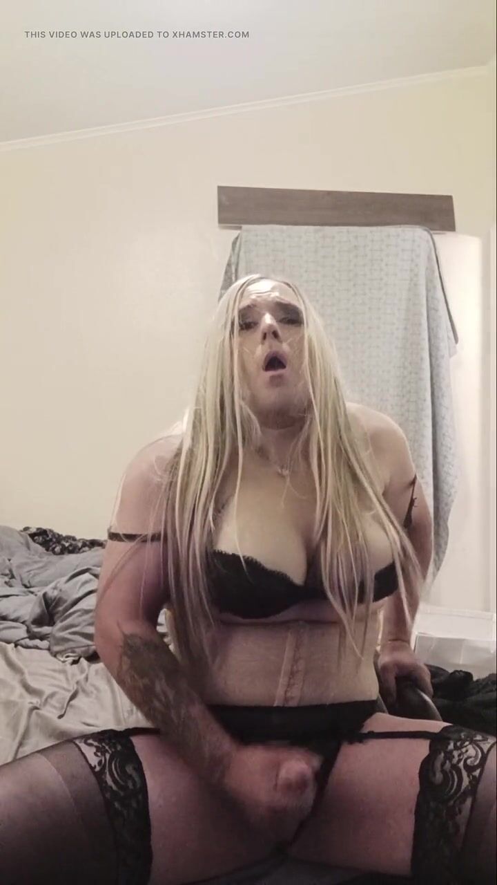 Crossdressing slut cums on herself