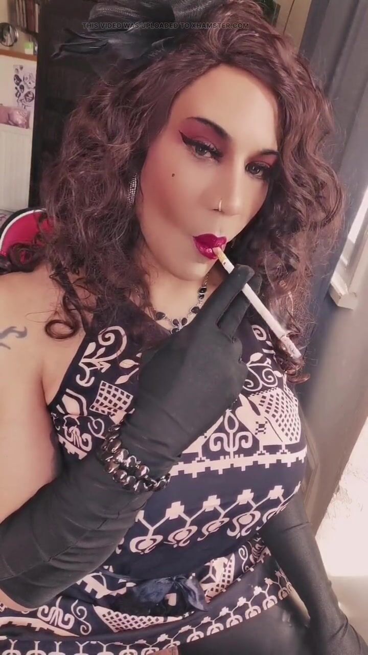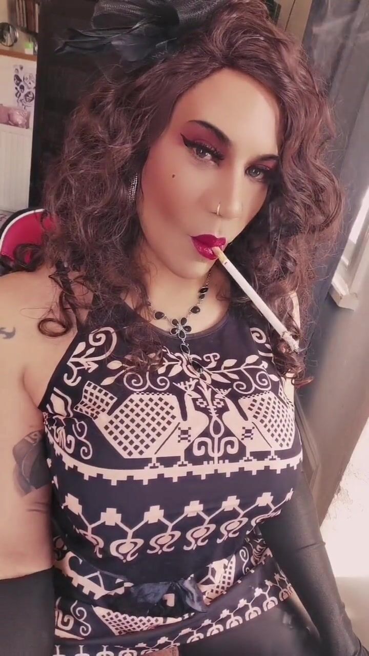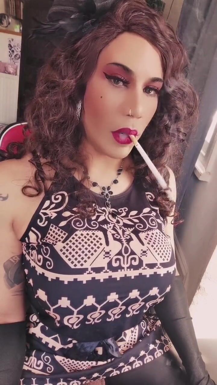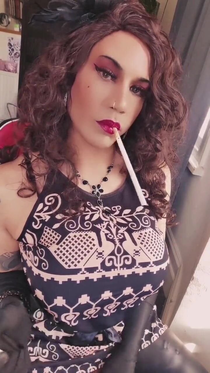 Hot Brunette trans girl smoking long cigarettes, knows you're watching