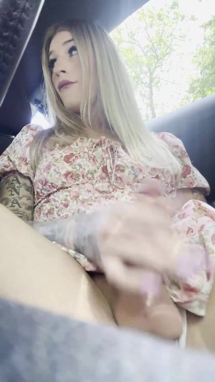 Sissy almost gets caught stroking her cock in public