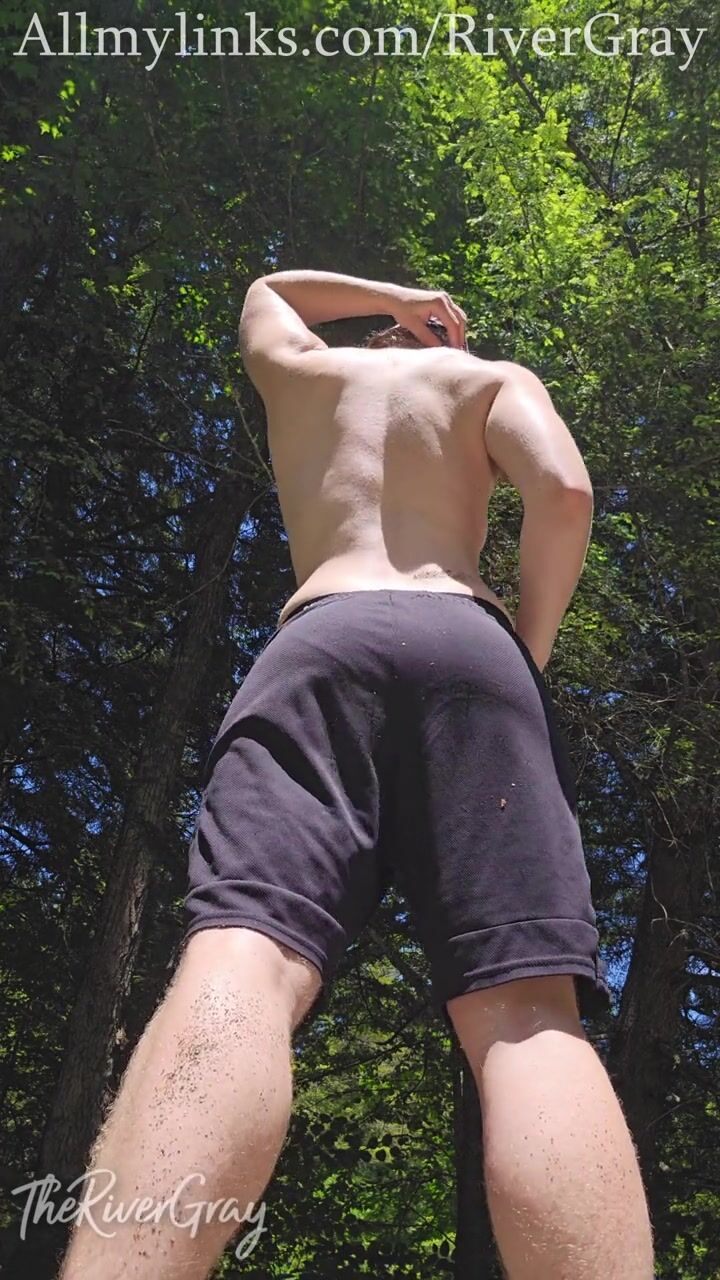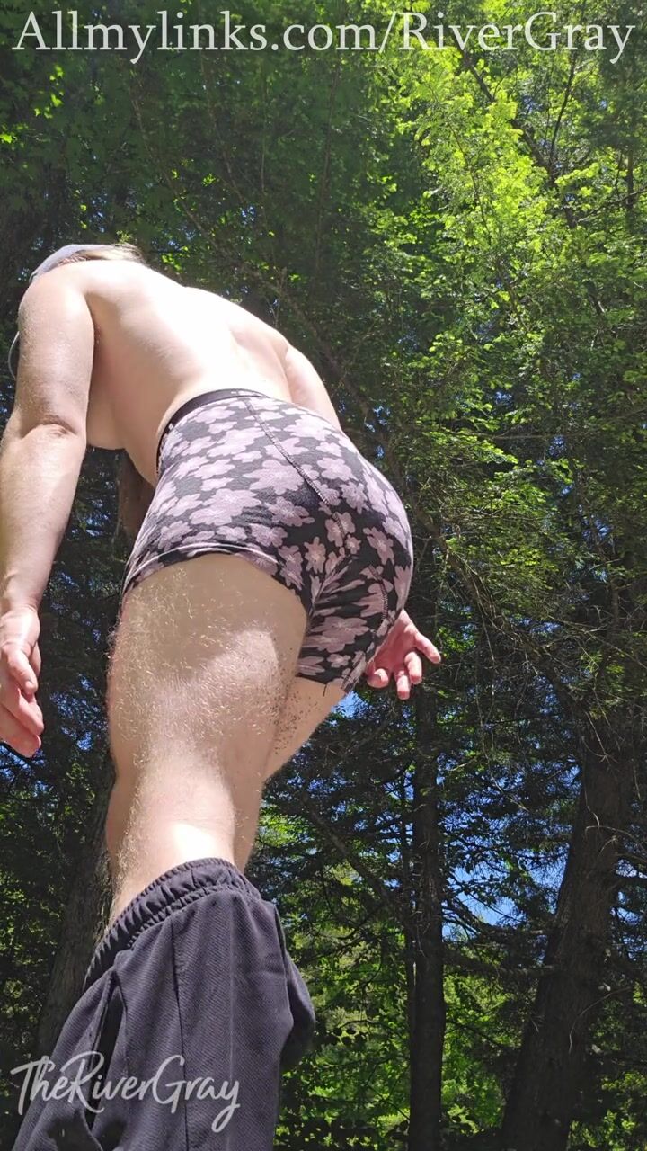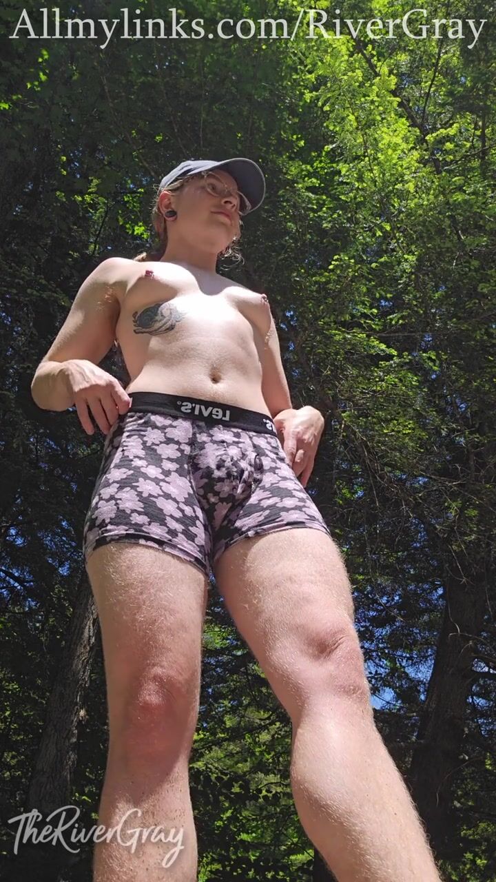 Trans Man Outdoor Striptease Hairy Blond Bush - River Gray