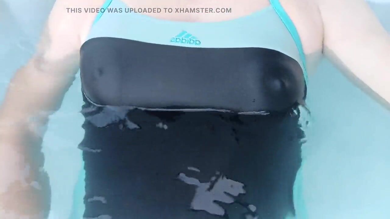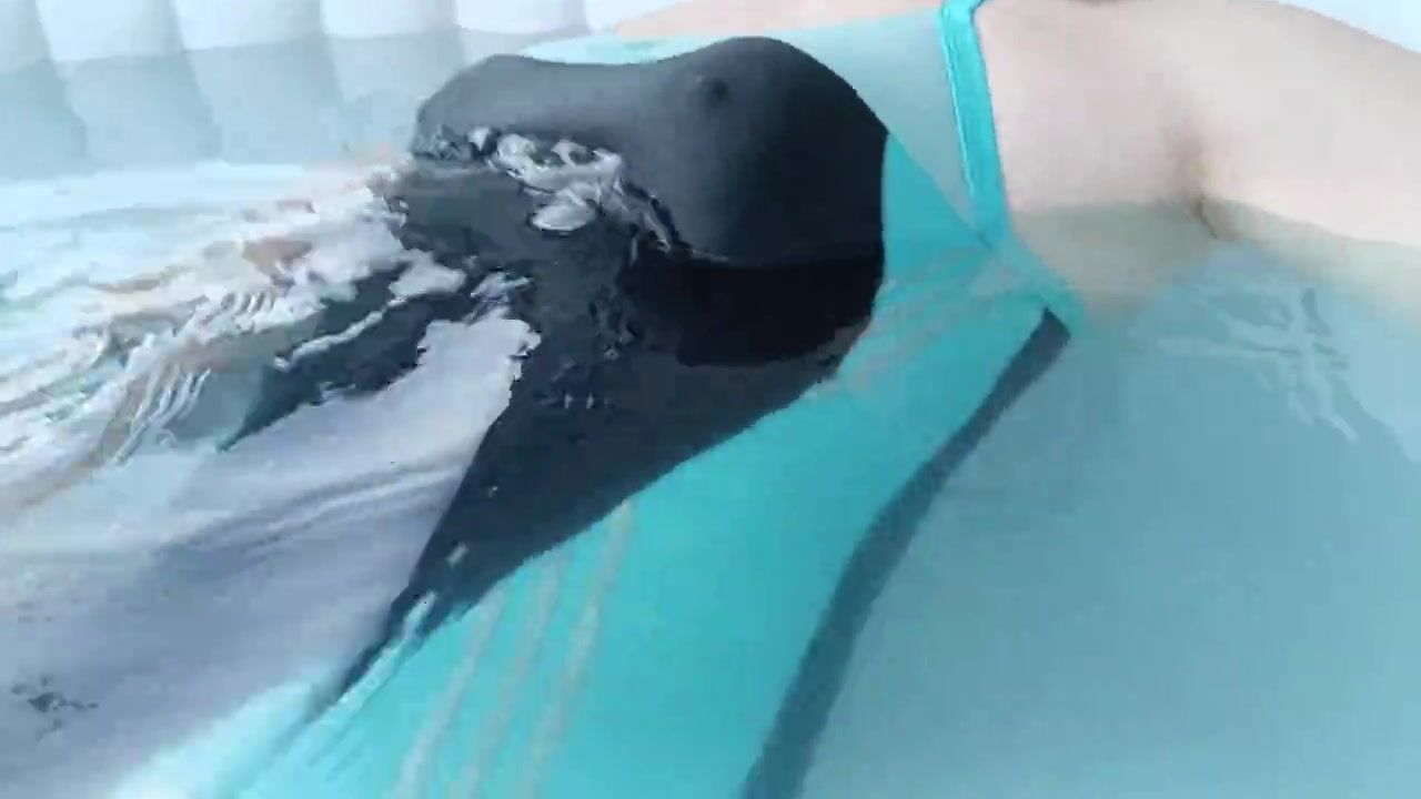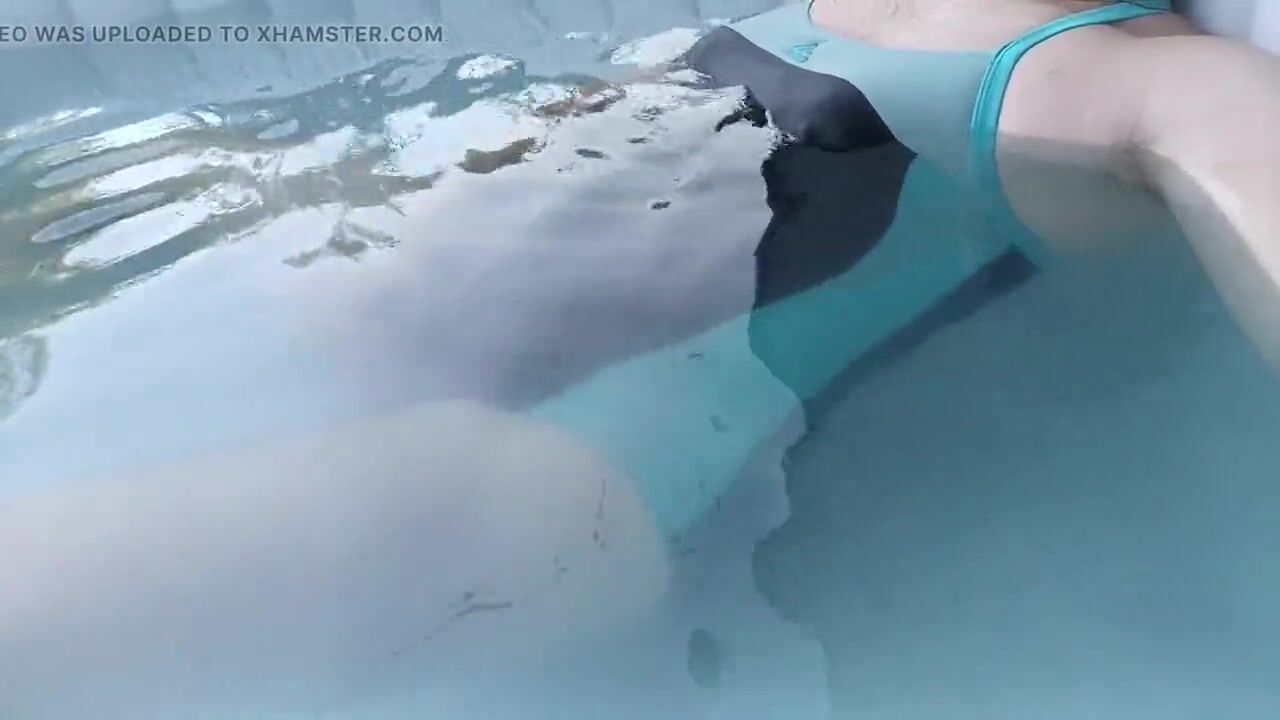 Shemale in sexy one piece swimsuit jerking in jaccuzzi