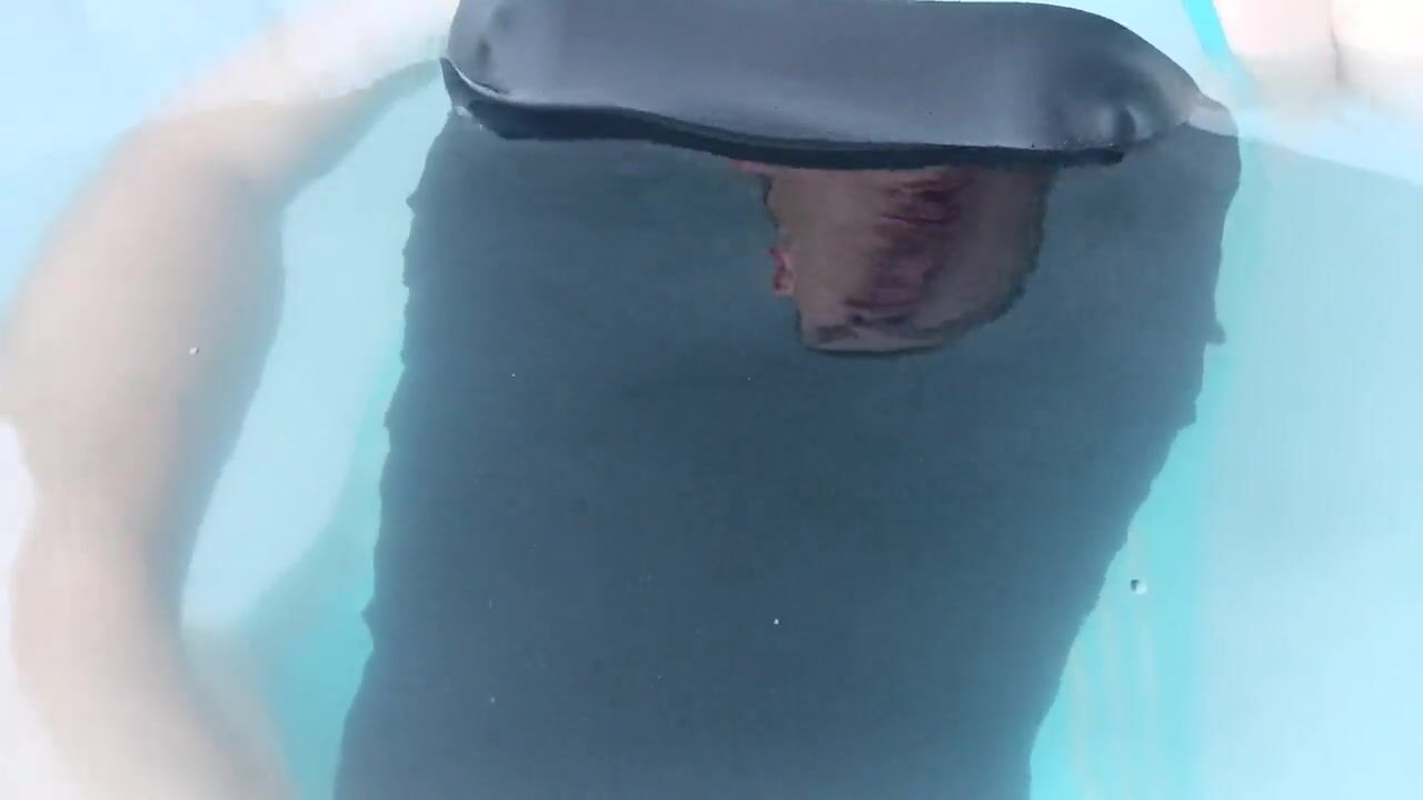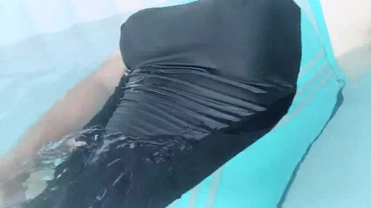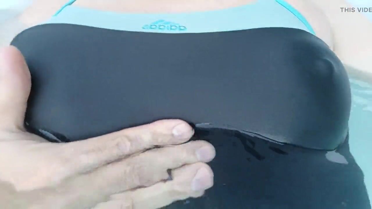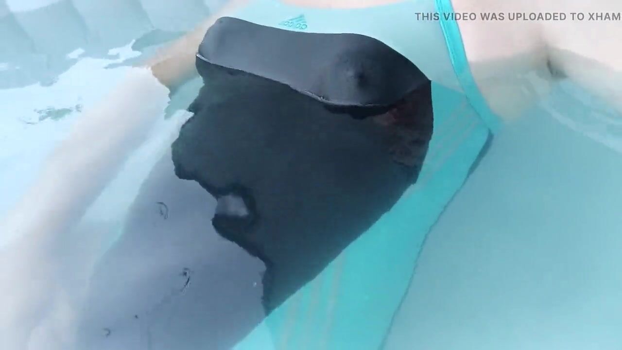 Shemale in sexy one piece swimsuit jerking in jaccuzzi