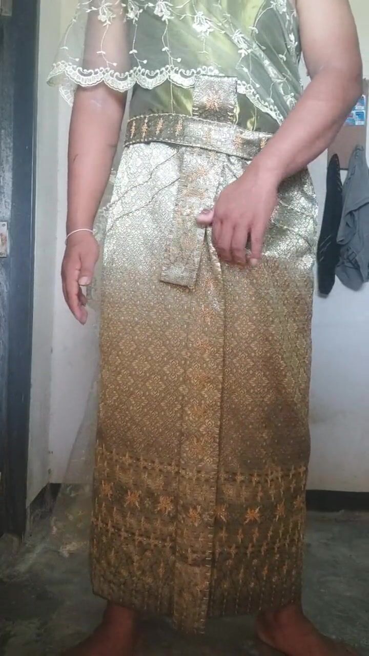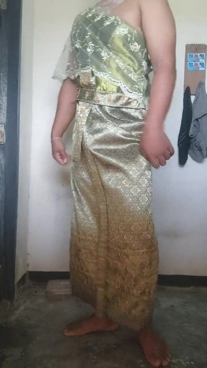 Crossdresser Wear Thai dress and masturbate