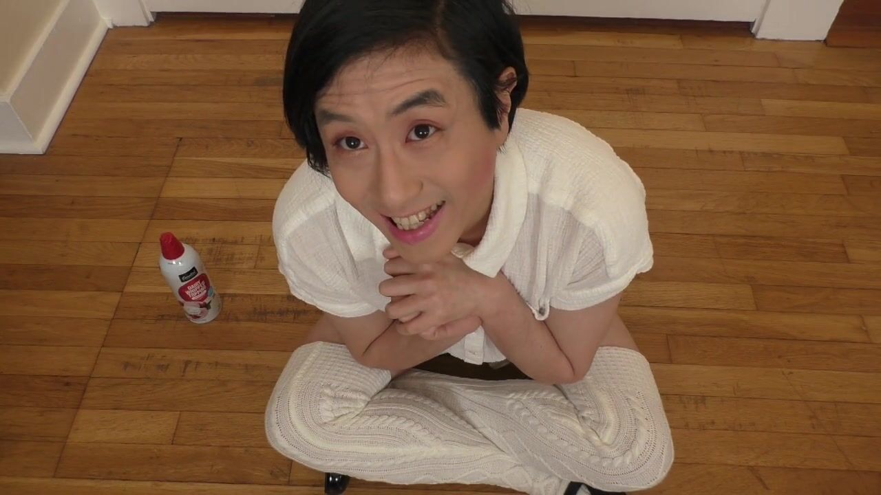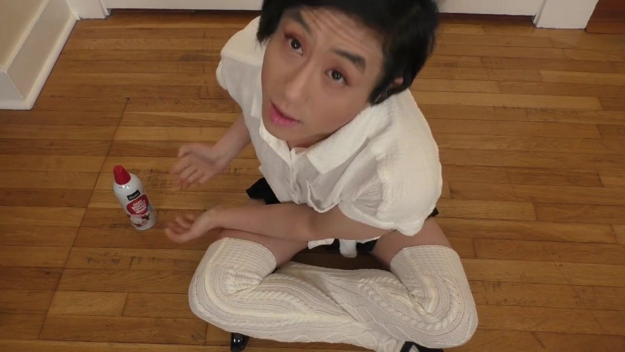 Petite Sissy Cleans her Messy Whipcream Face with a Self Piss Shower