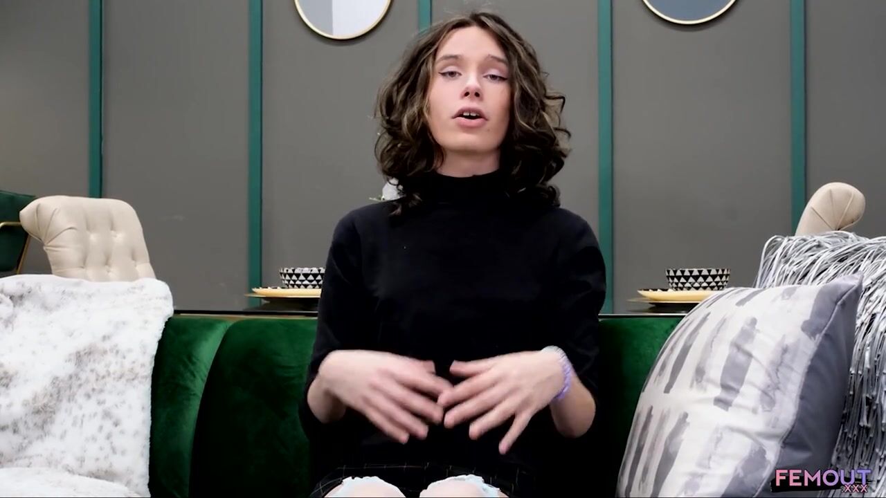 FEMOUT.XXX: Skinny Tranny In Lingerie And Stockings With Hard Cock Masturbates