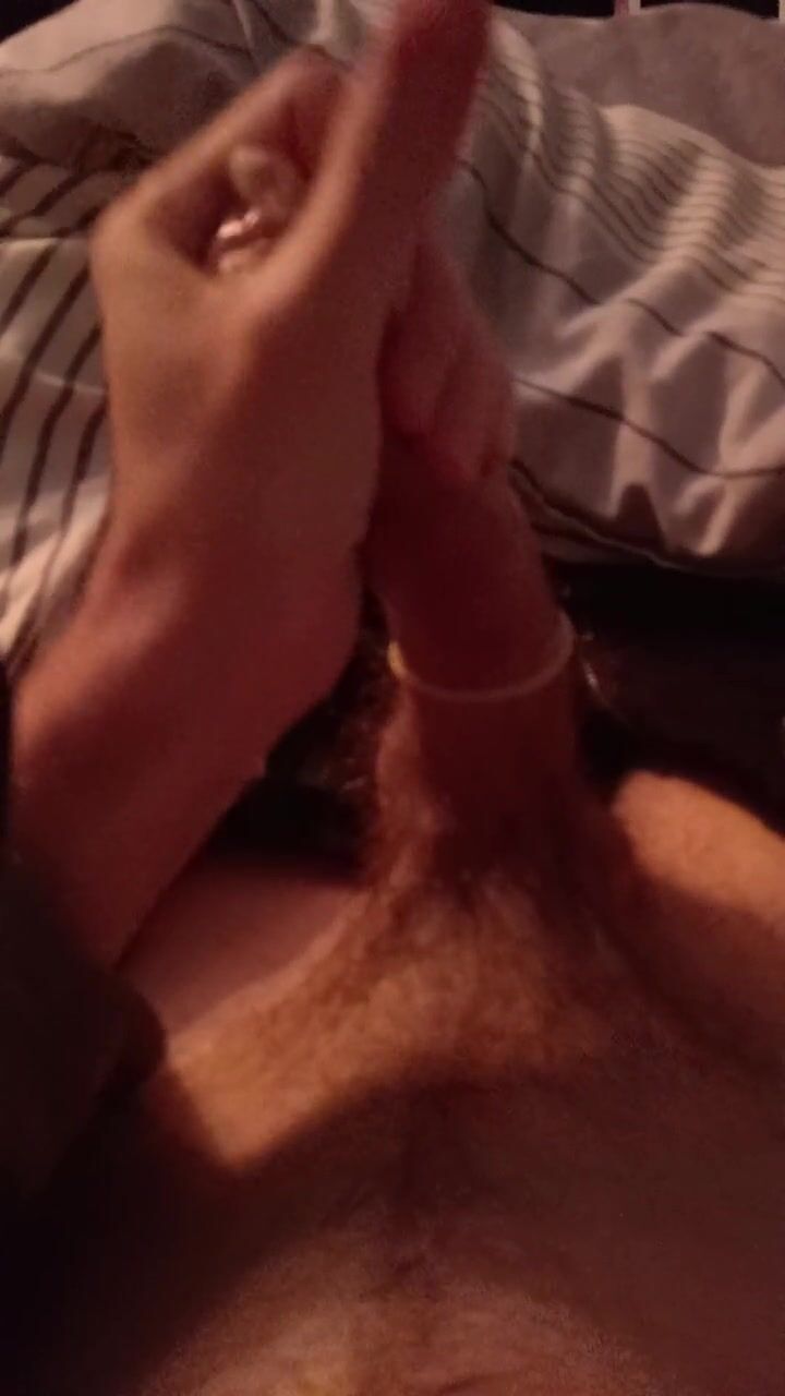 Playing with thick mushroom-headed cock in a tight condom