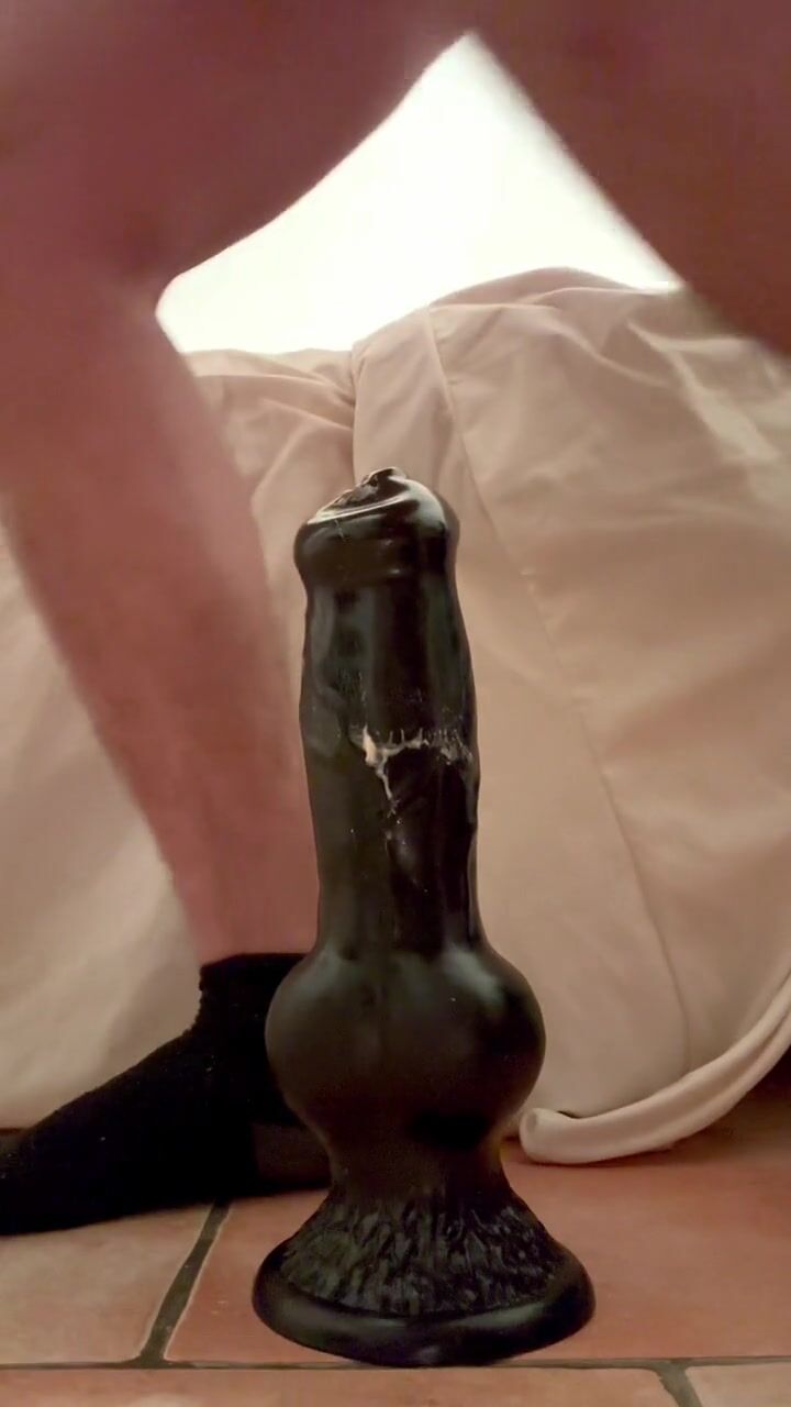 Jeune gay solo s’amuse avec son gros gode noir pour une bonne dilatation anal