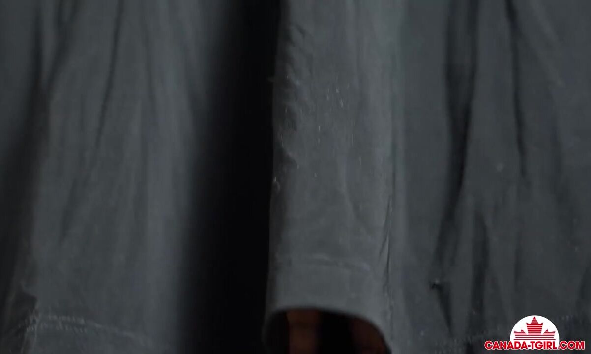 GROOBY CLUB - Blonde Canadian Tgirl in black dress masturbates