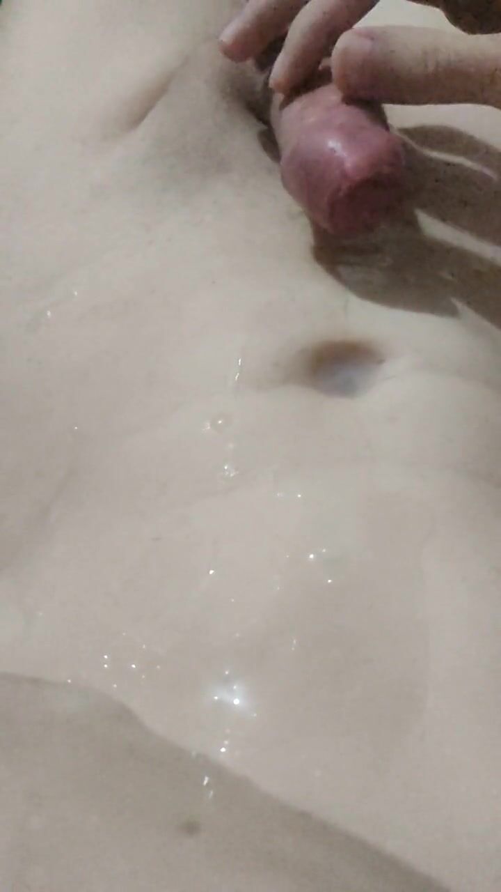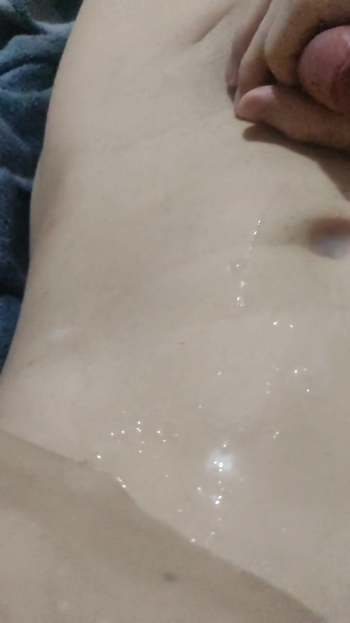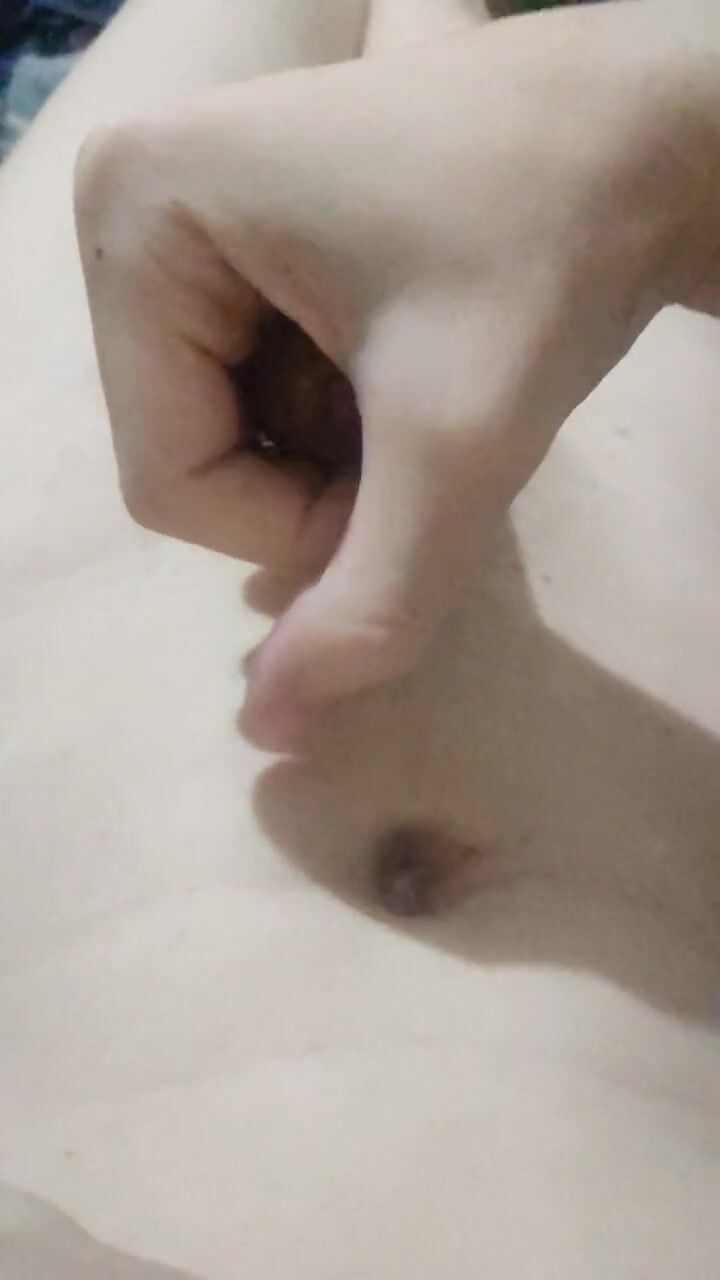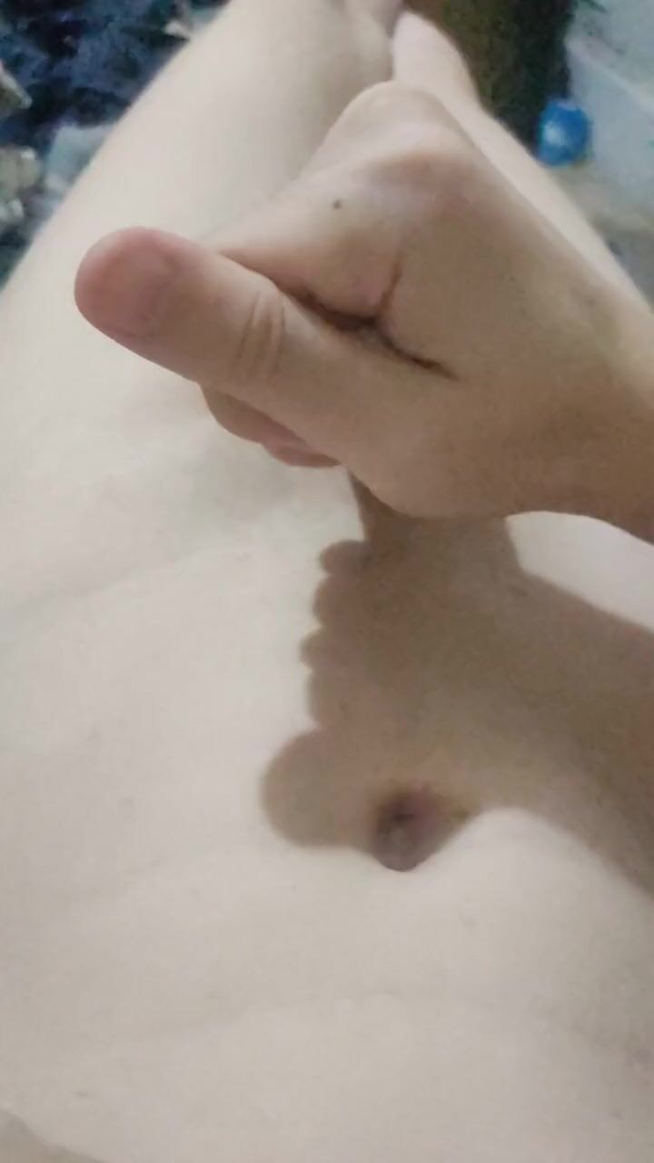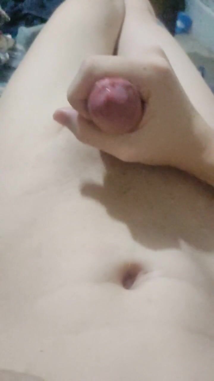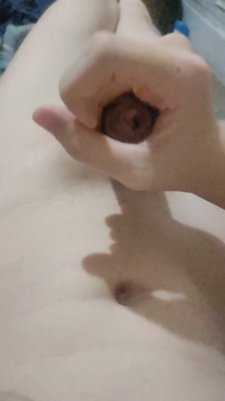 A beautiful white-skinned boy touches himself a little to make a gift to himself