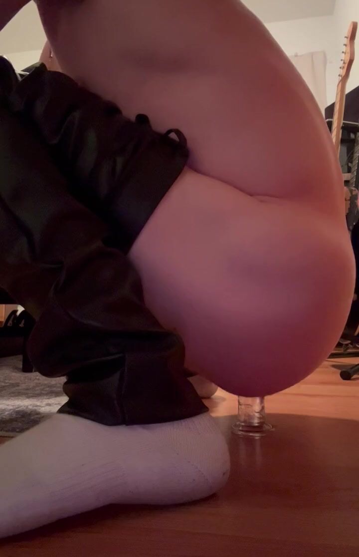 Bi twink riding dildo in leather pants
