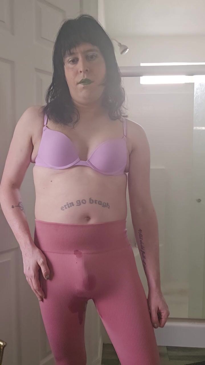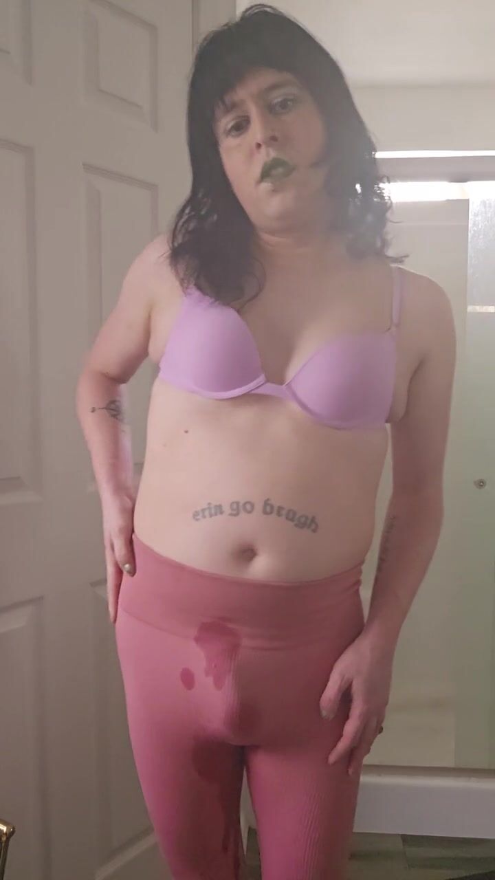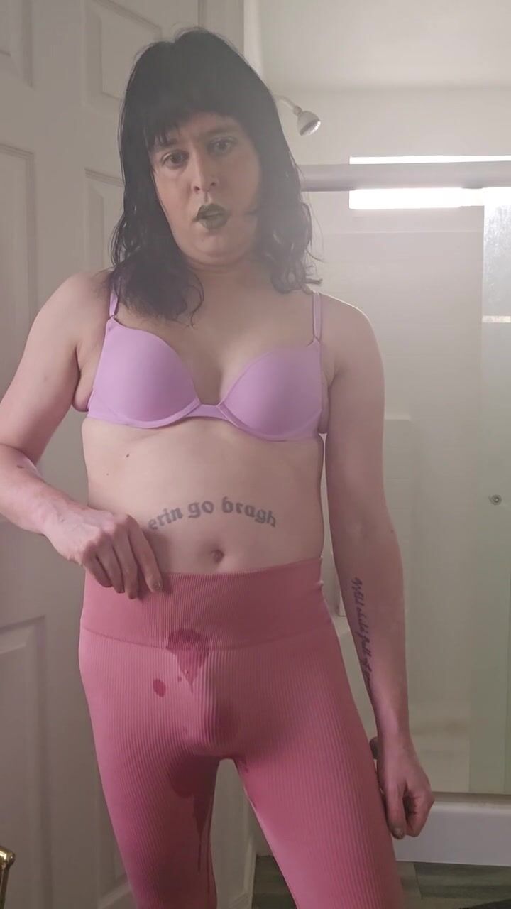 Trans girl pisses her leggings