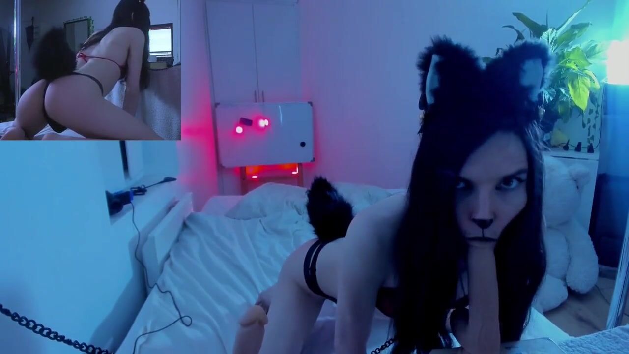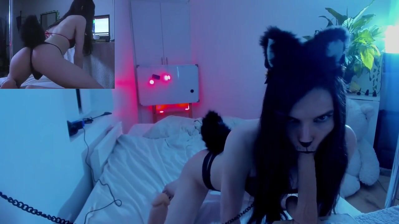 Panther Cat & Anne Antonela, 2 very beautiful horny TS share a big white cock (Ana...