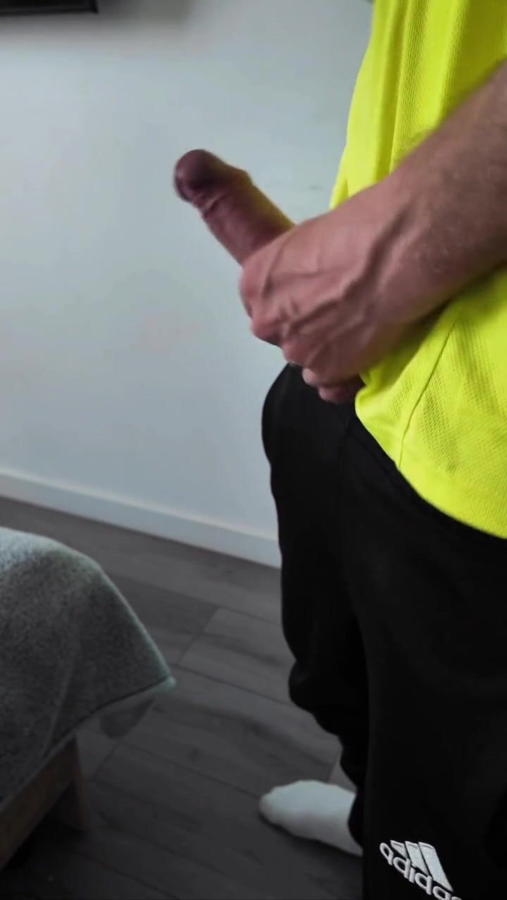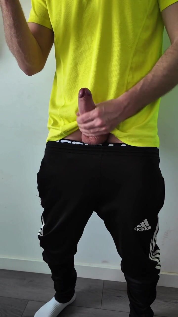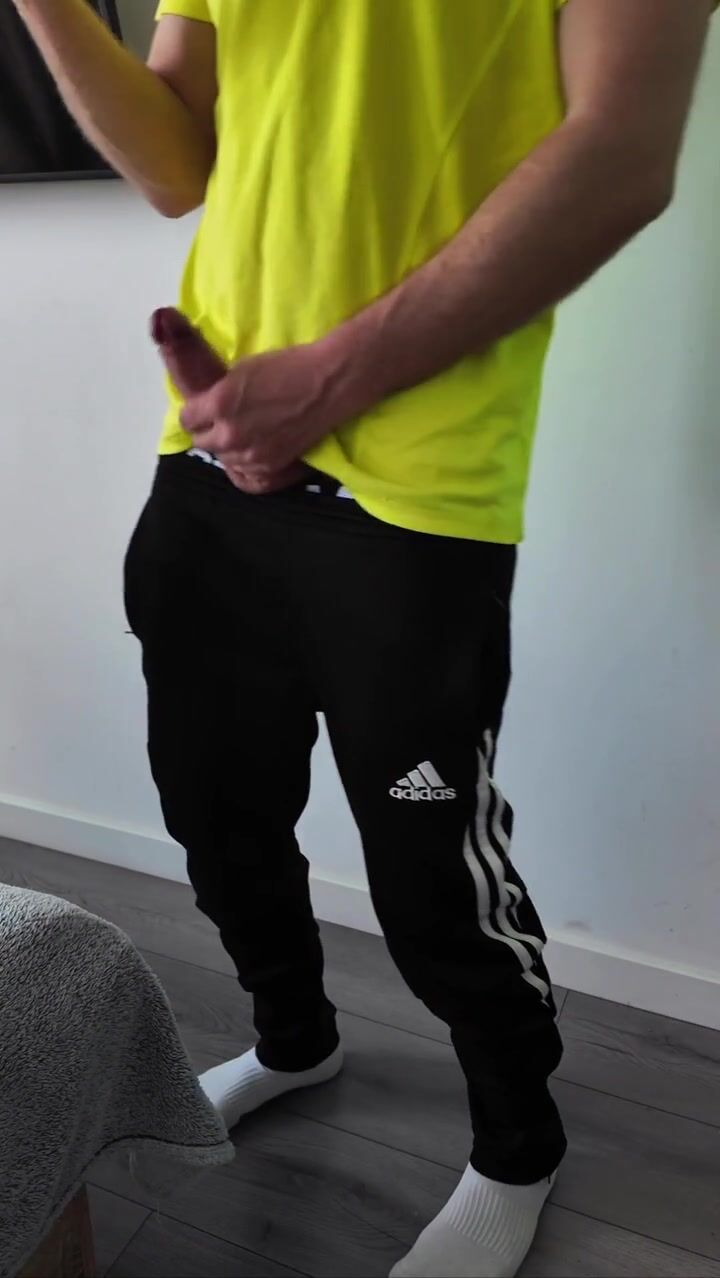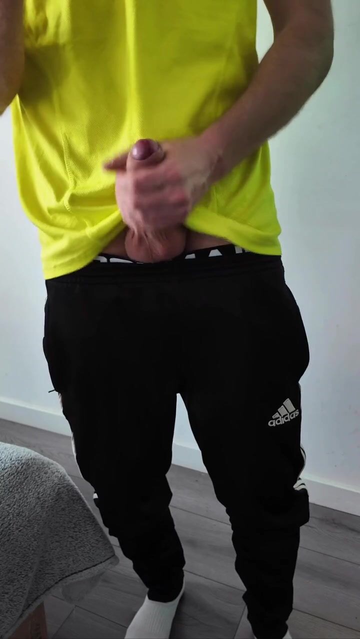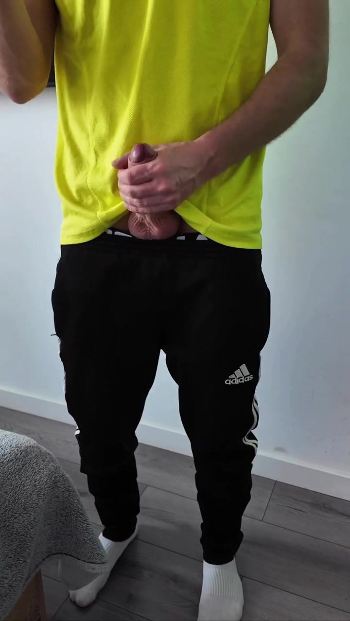 A sporty guy decided to relieve tension after coming home from the gym. Masturbation, lots of