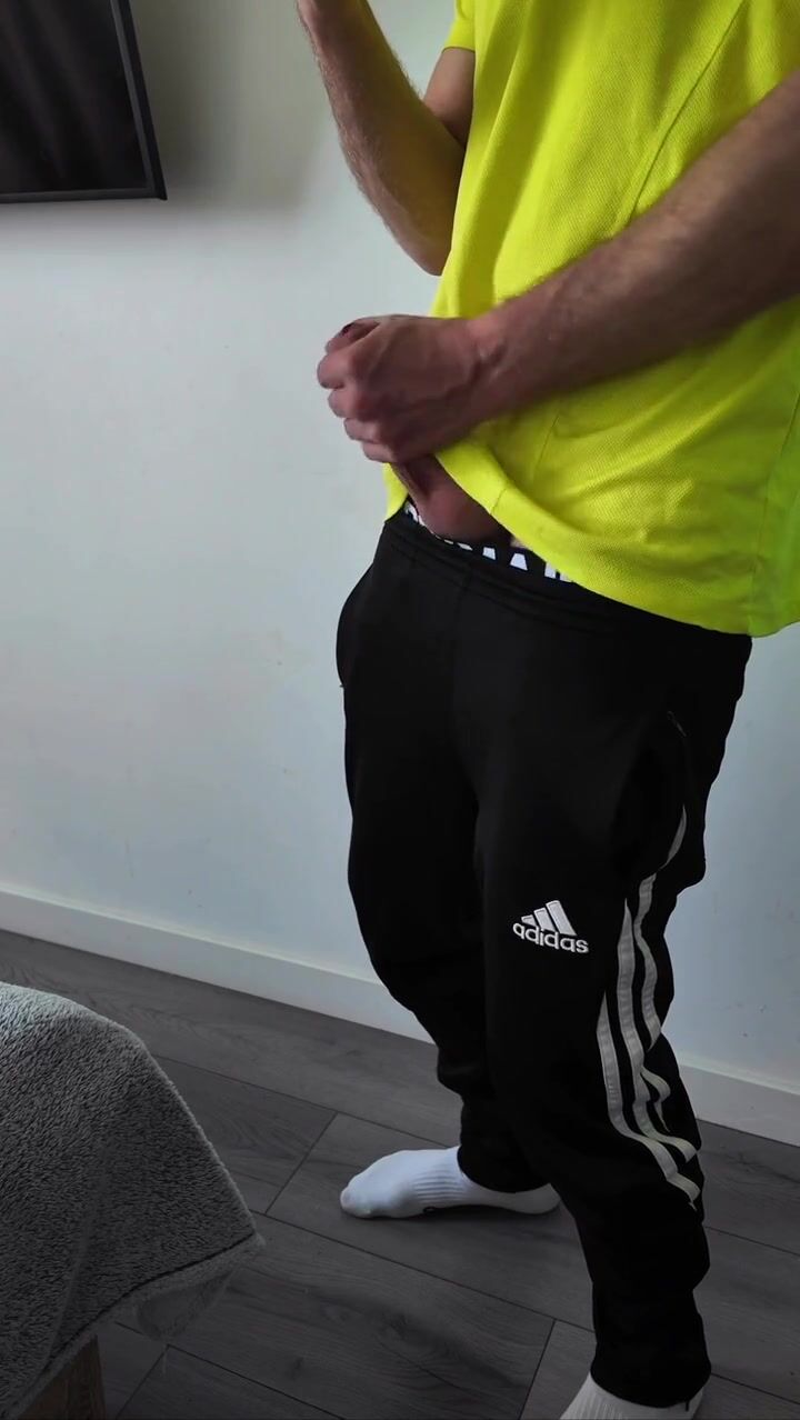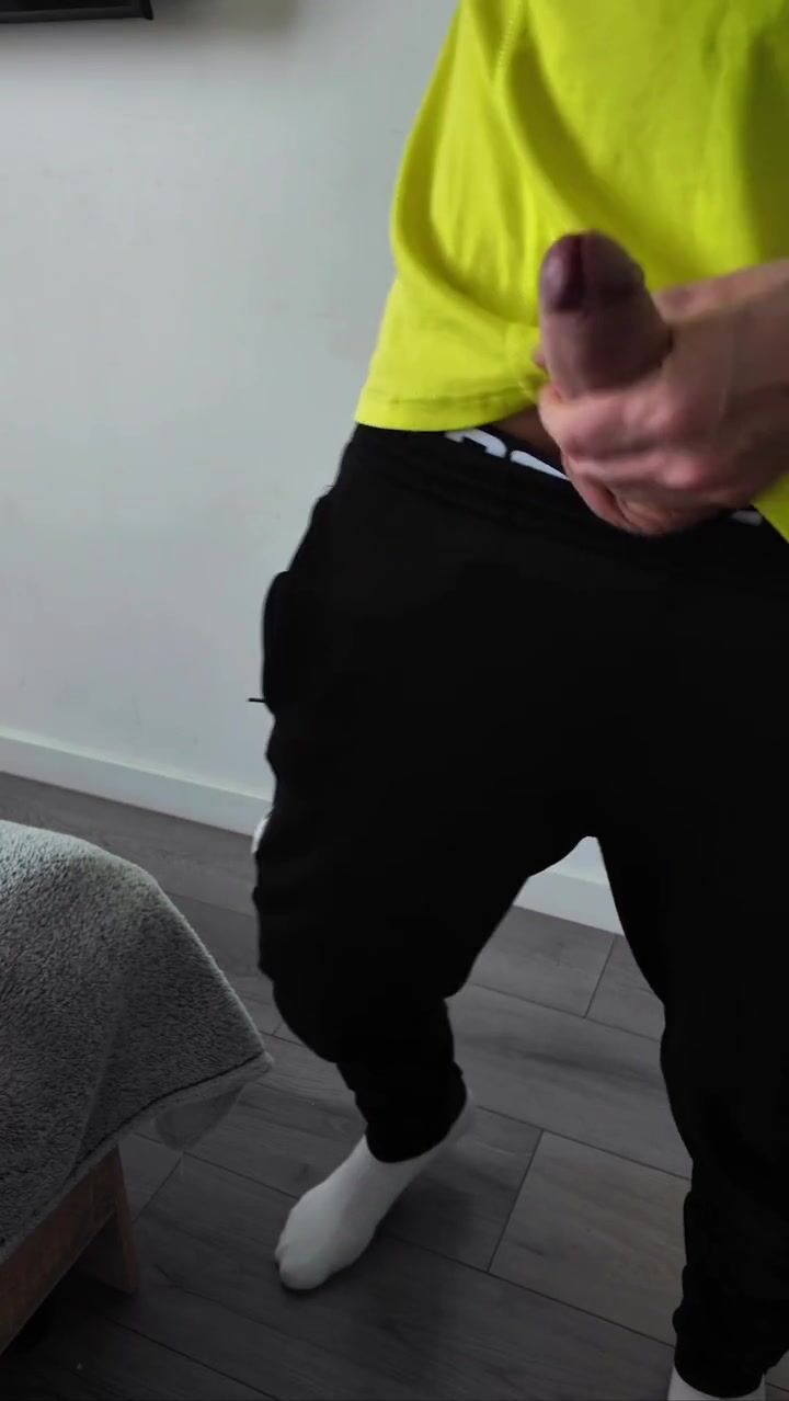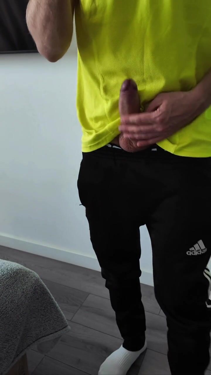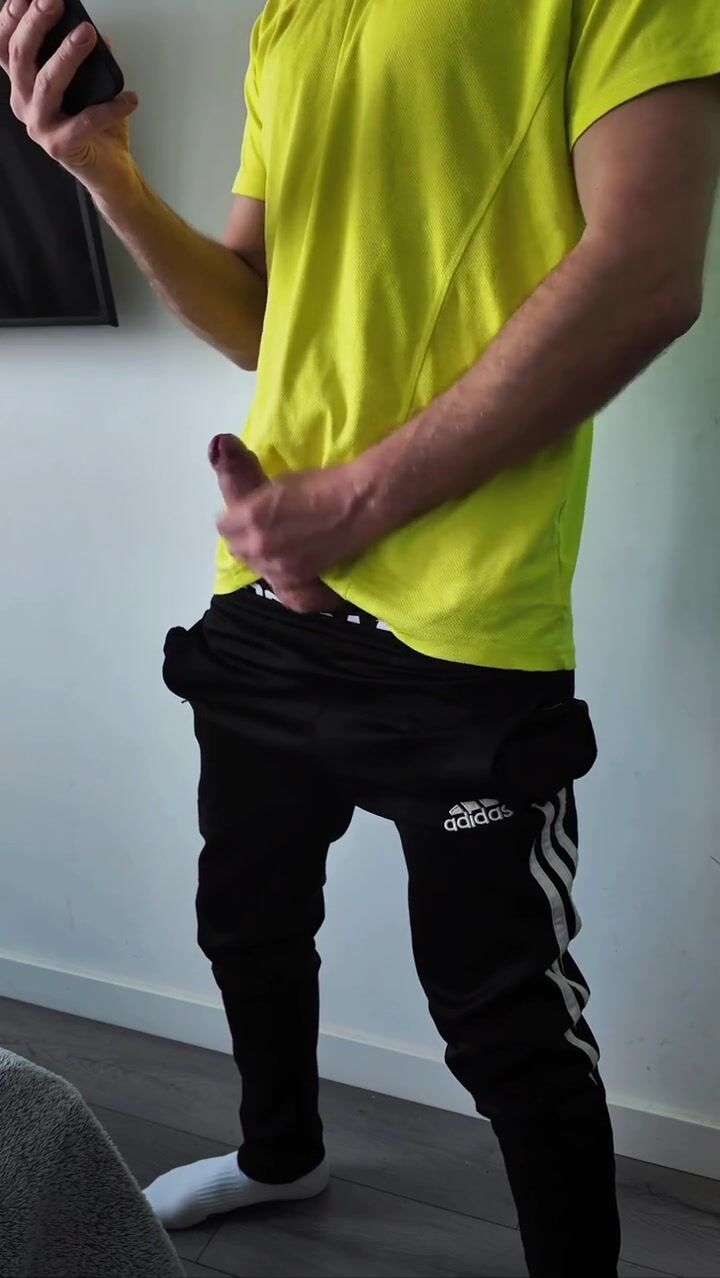 A sporty guy decided to relieve tension after coming home from the gym. Masturbation, lots of