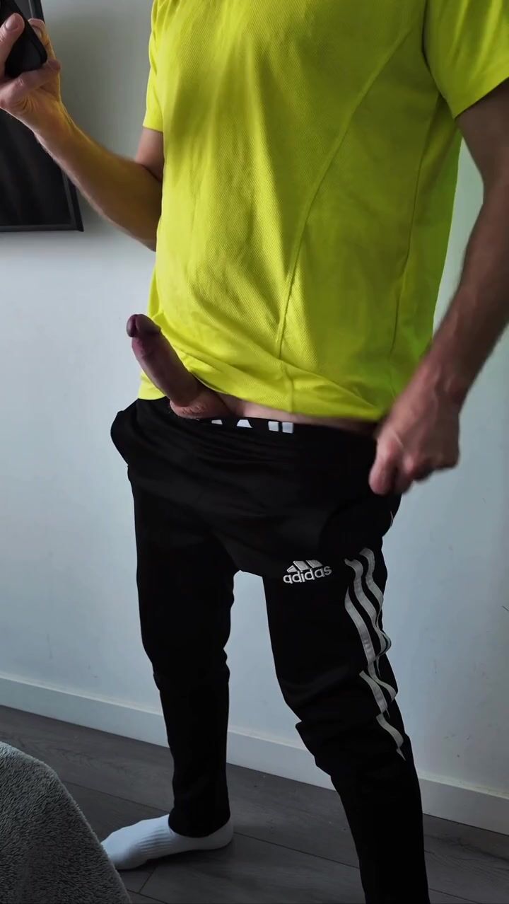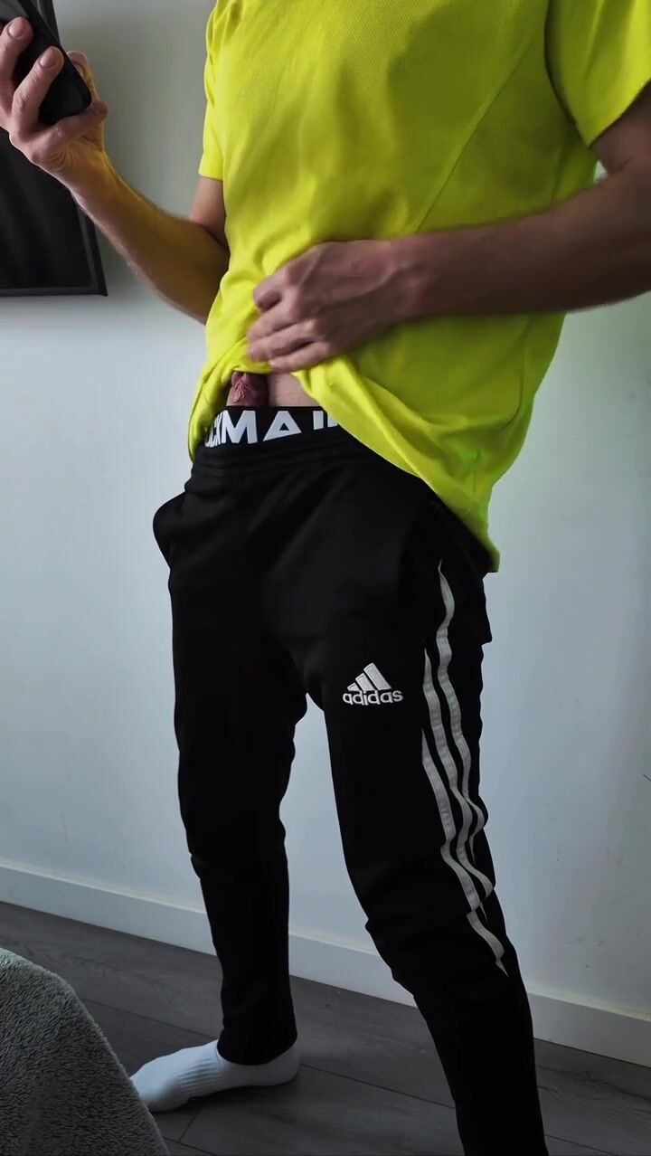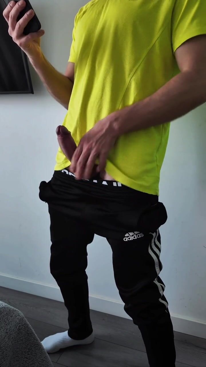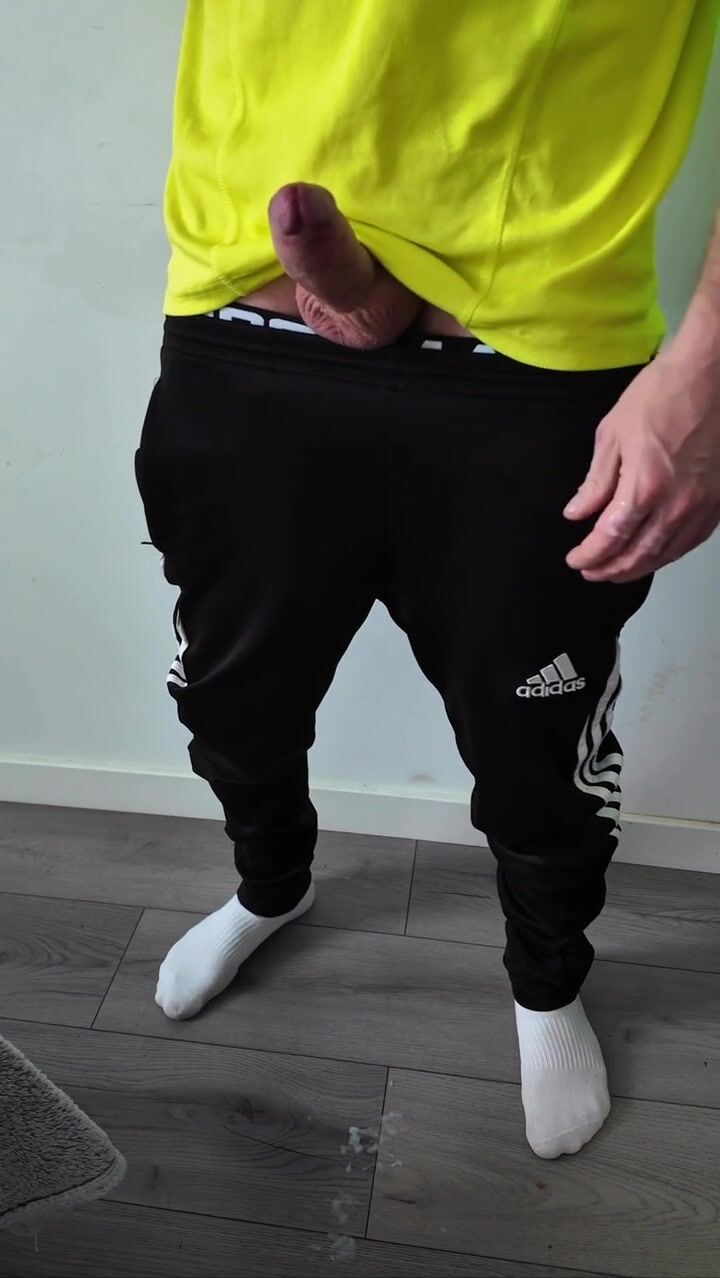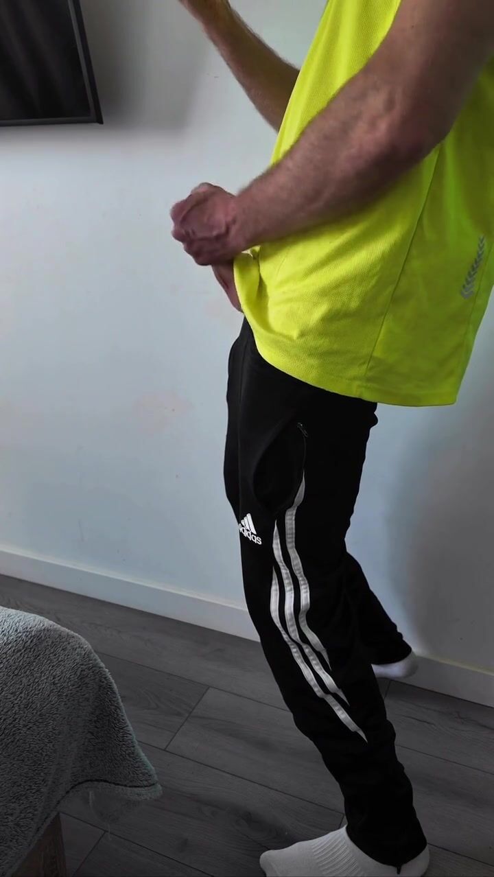 A sporty guy decided to relieve tension after coming home from the gym. Masturbation, lots of