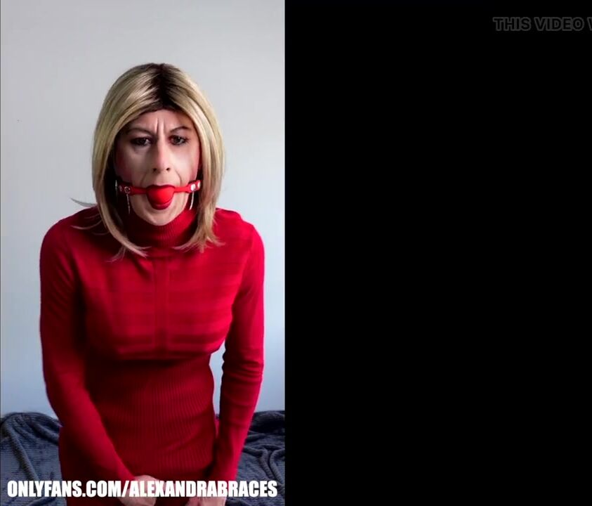Naughty ball gag pantyhose masturbation featuring Alexandra Braces