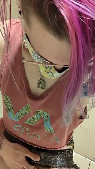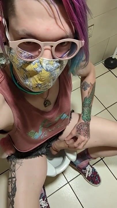 Trans Girl Maeri Shyno Jerks Big Dick in Public Restroom