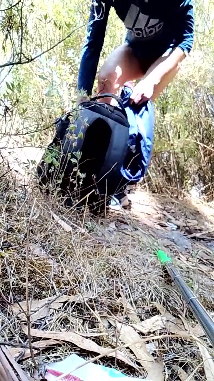Exposed fag faggot walking naked in the woods