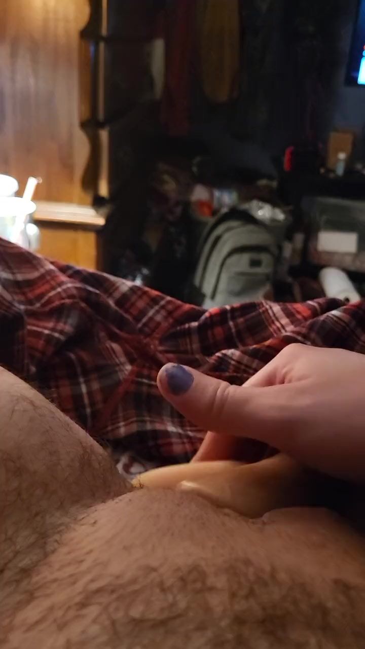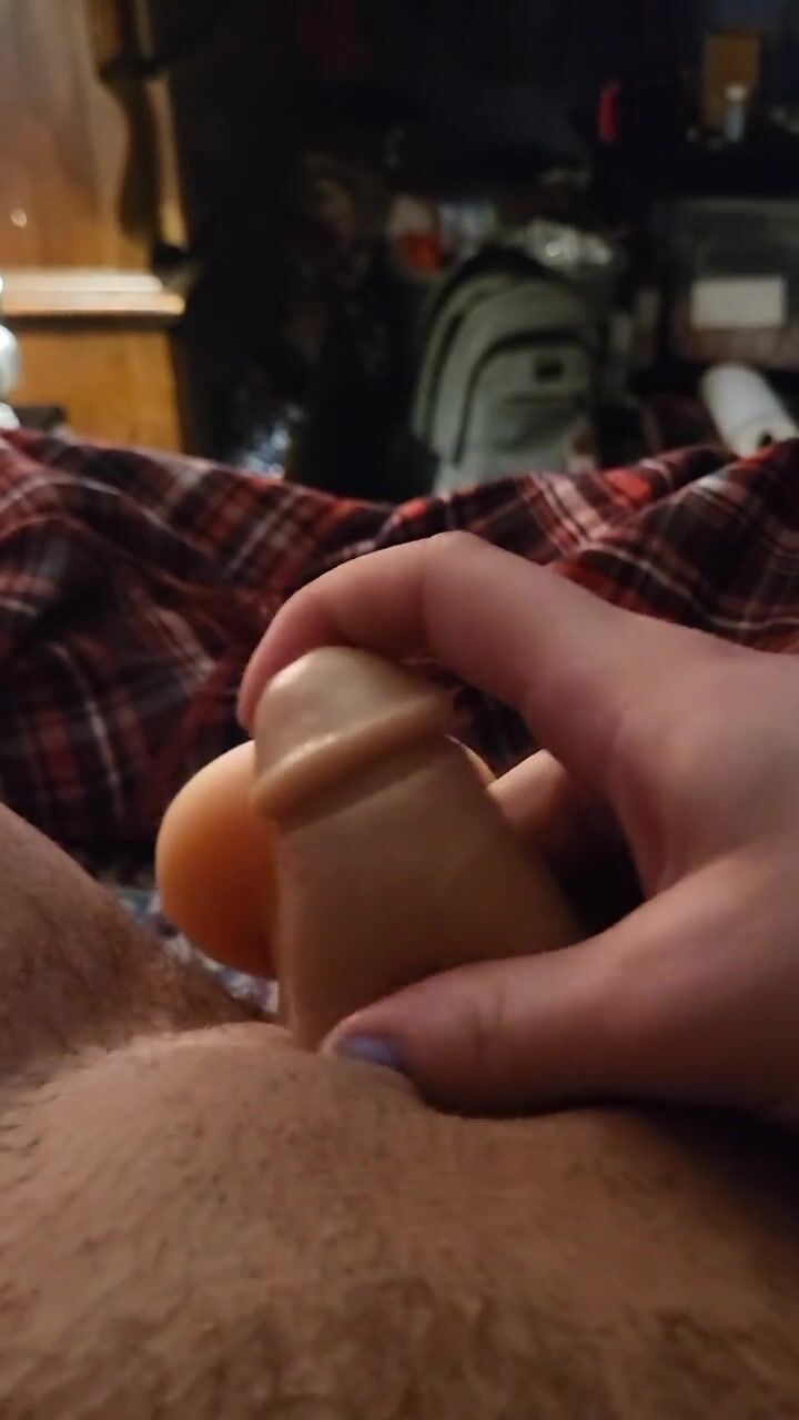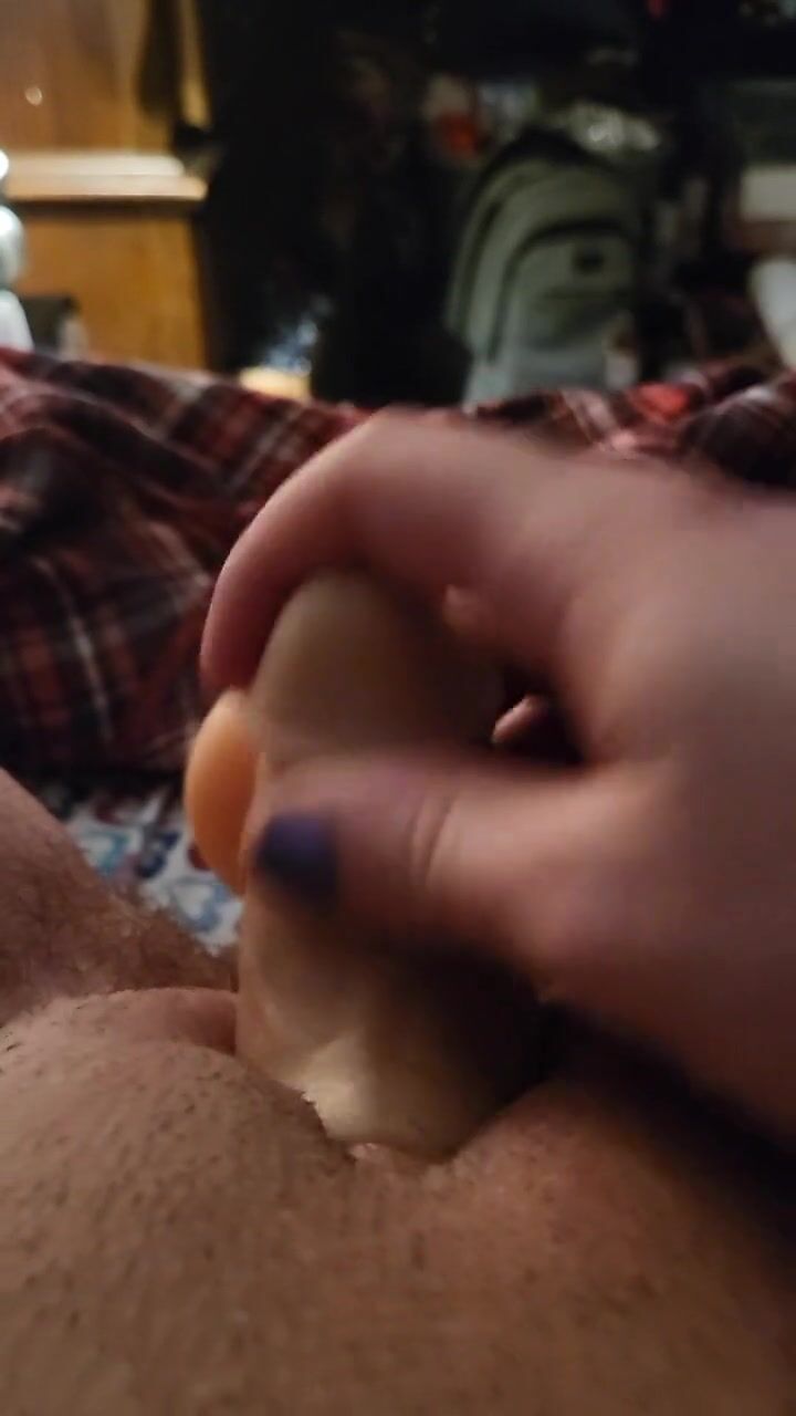 Trans guy uses stroker and dildo on his wet pussy