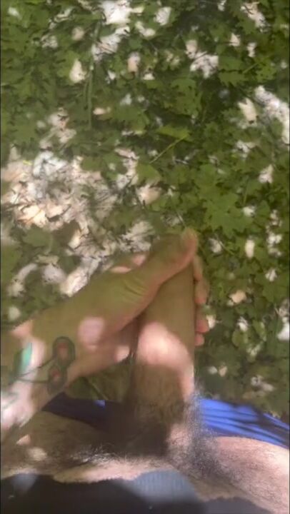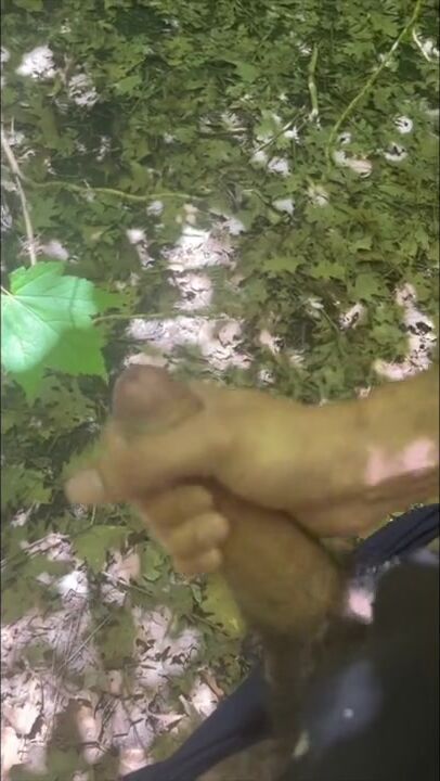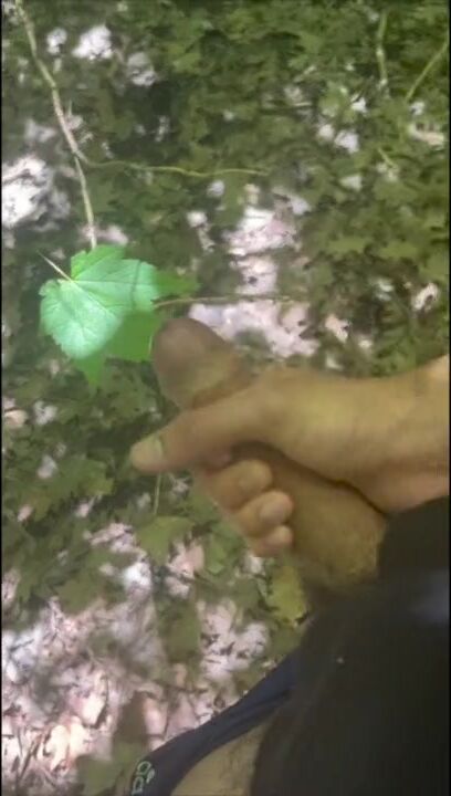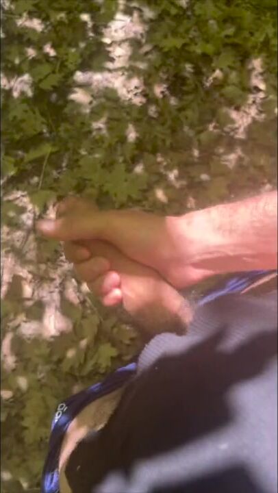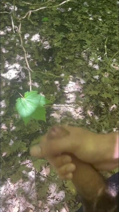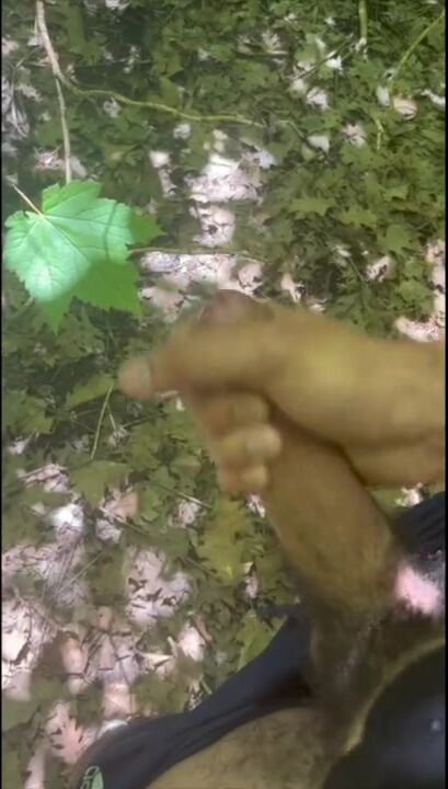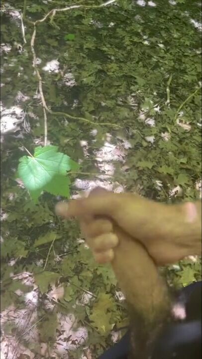 Big hairy cock twink jerk off in the woods third cum shot load of the day
