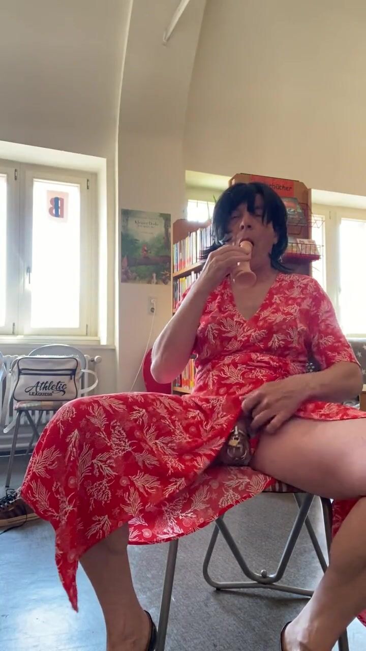 Sexy Trans Shemale Sucks Big Cock and Rides it in Public - Ai Generated