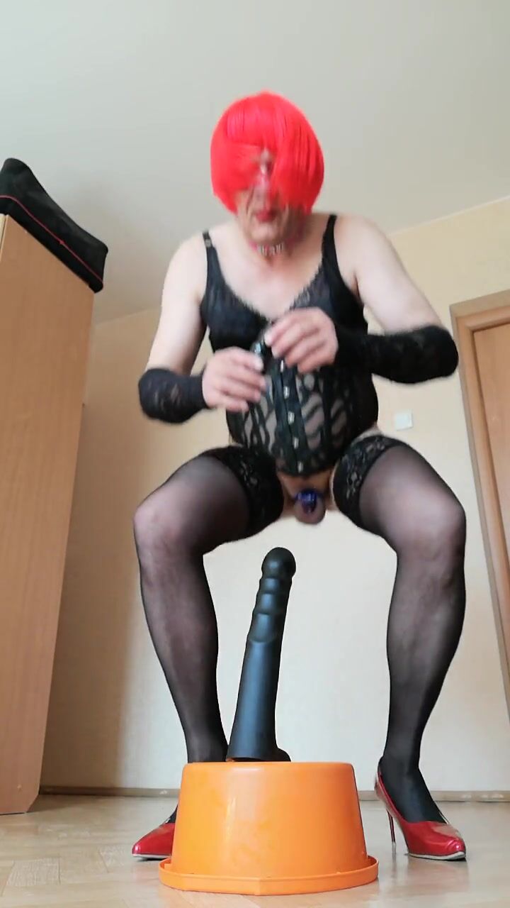 Sissy Oksana 2021 rides a huge dildo and gets sissygasm in chastity_230518