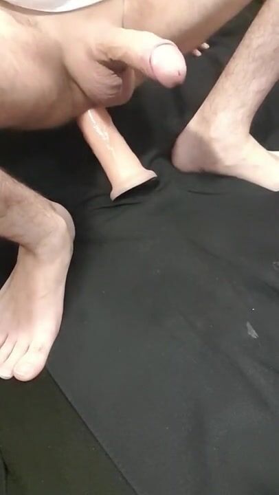 Big dick erection when riding a huge dildo