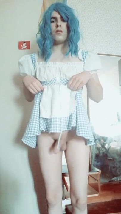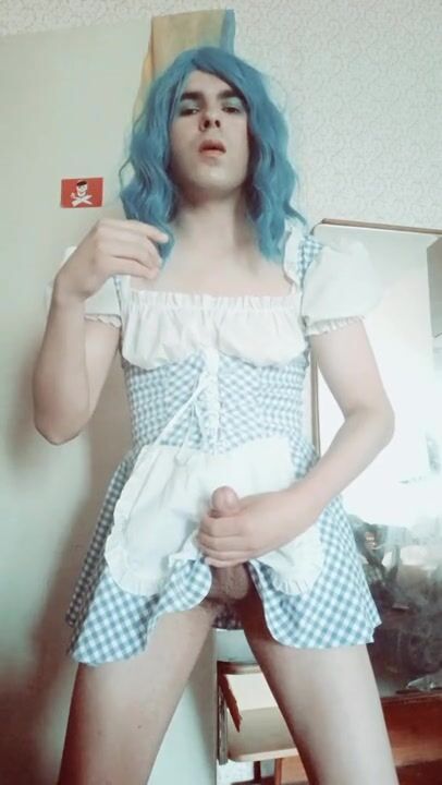 Little Trapgirl With Blue Hair Stroking Her Filthy Dick