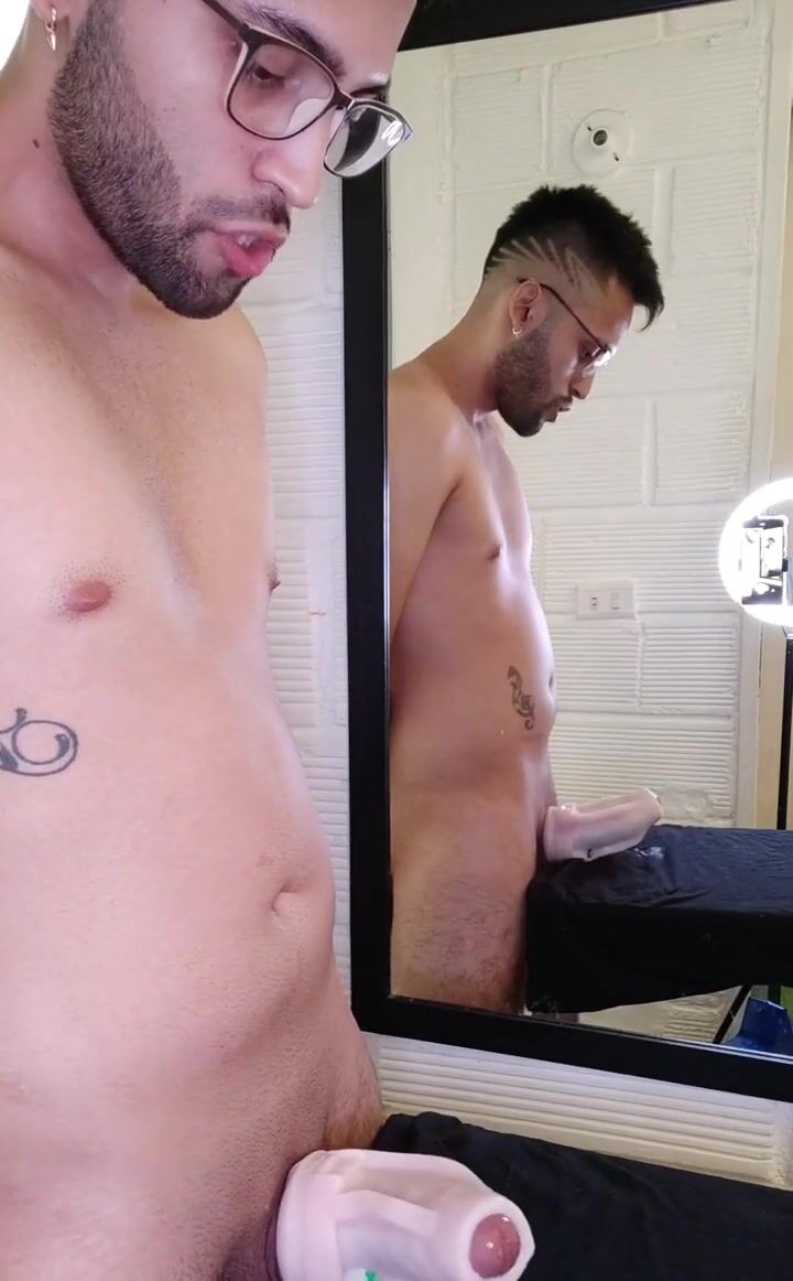 Fucking my fake pussy thinking it's you and shooting a nice one on my black shirt