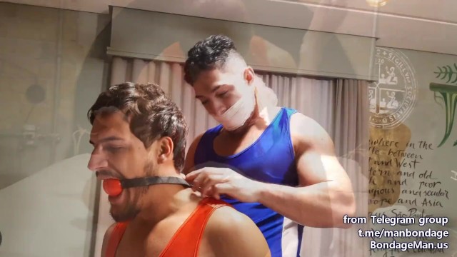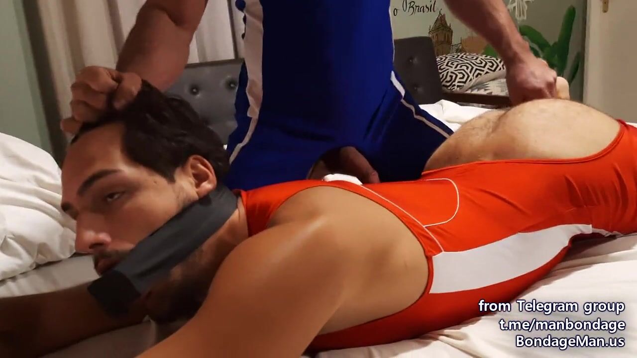 Samuel Hodecker in bondage tied up gagged Mike Bebecito fucking pulling hair