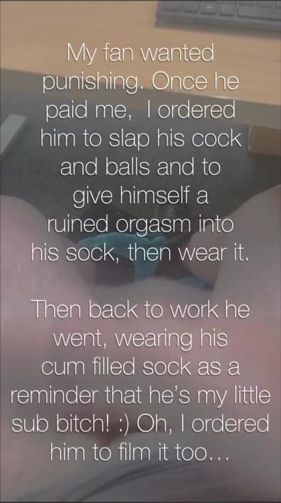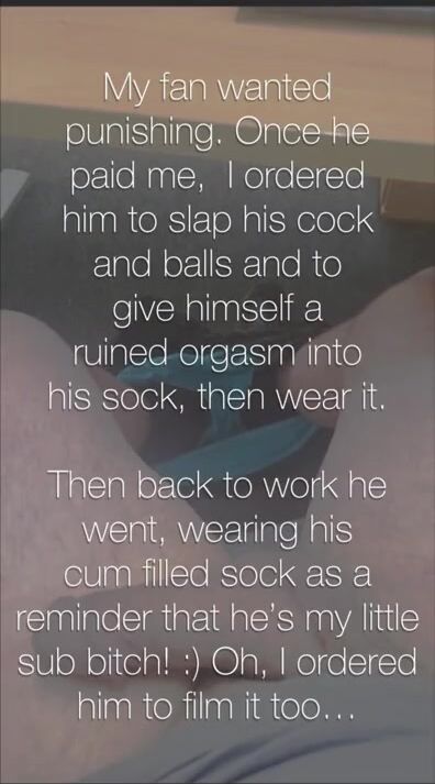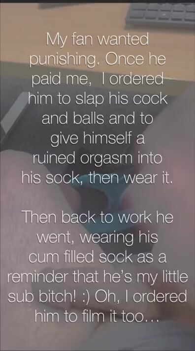Cock and ball slapping - sub ordered to ruin orgasm into his sock and made to wear it