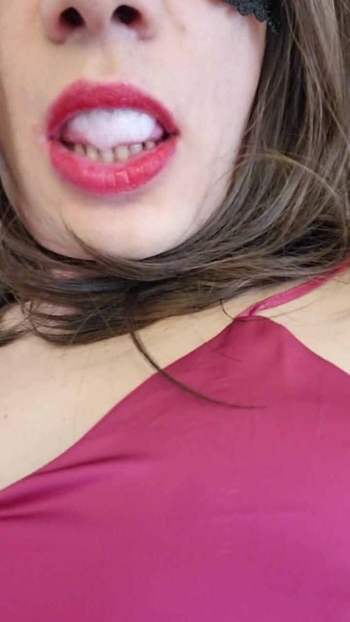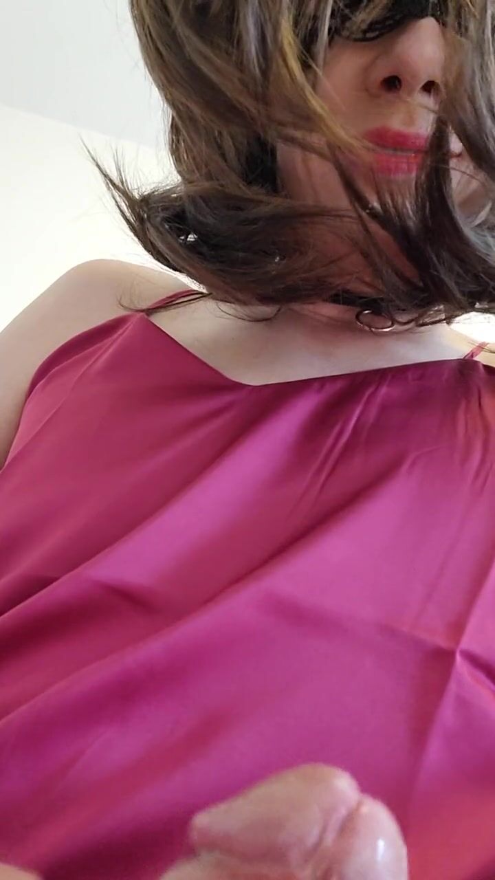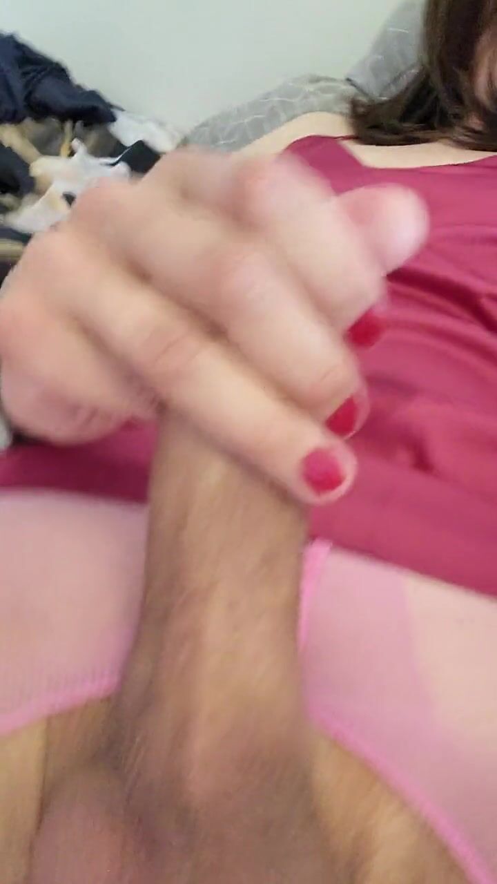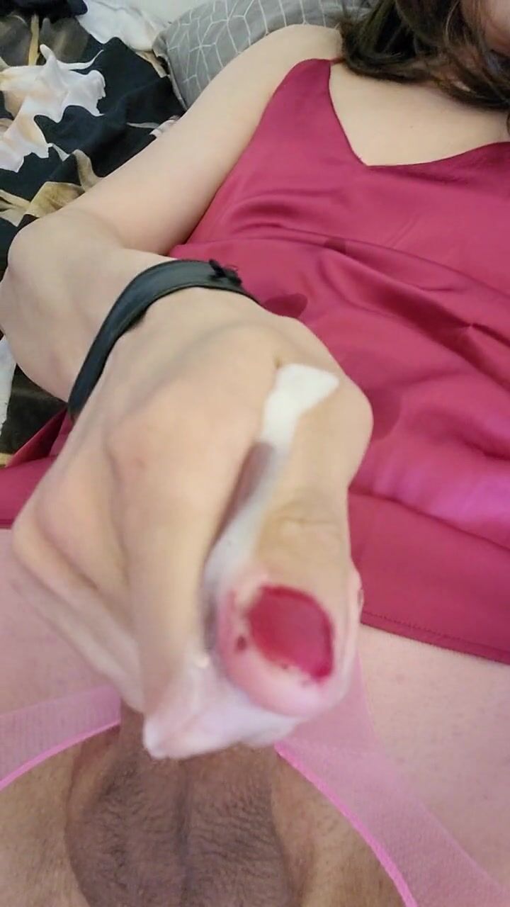 Trans femboy strokes her dick and cums. Girly sissy orgasm and cum eating