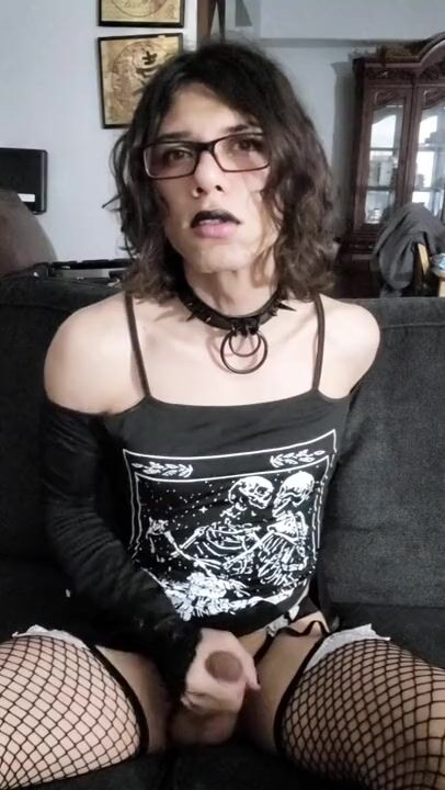 Goth femboy has an eternal grudge against this couch!