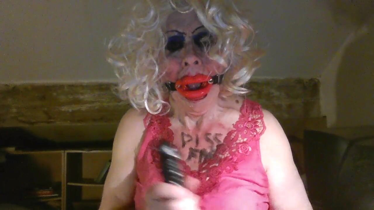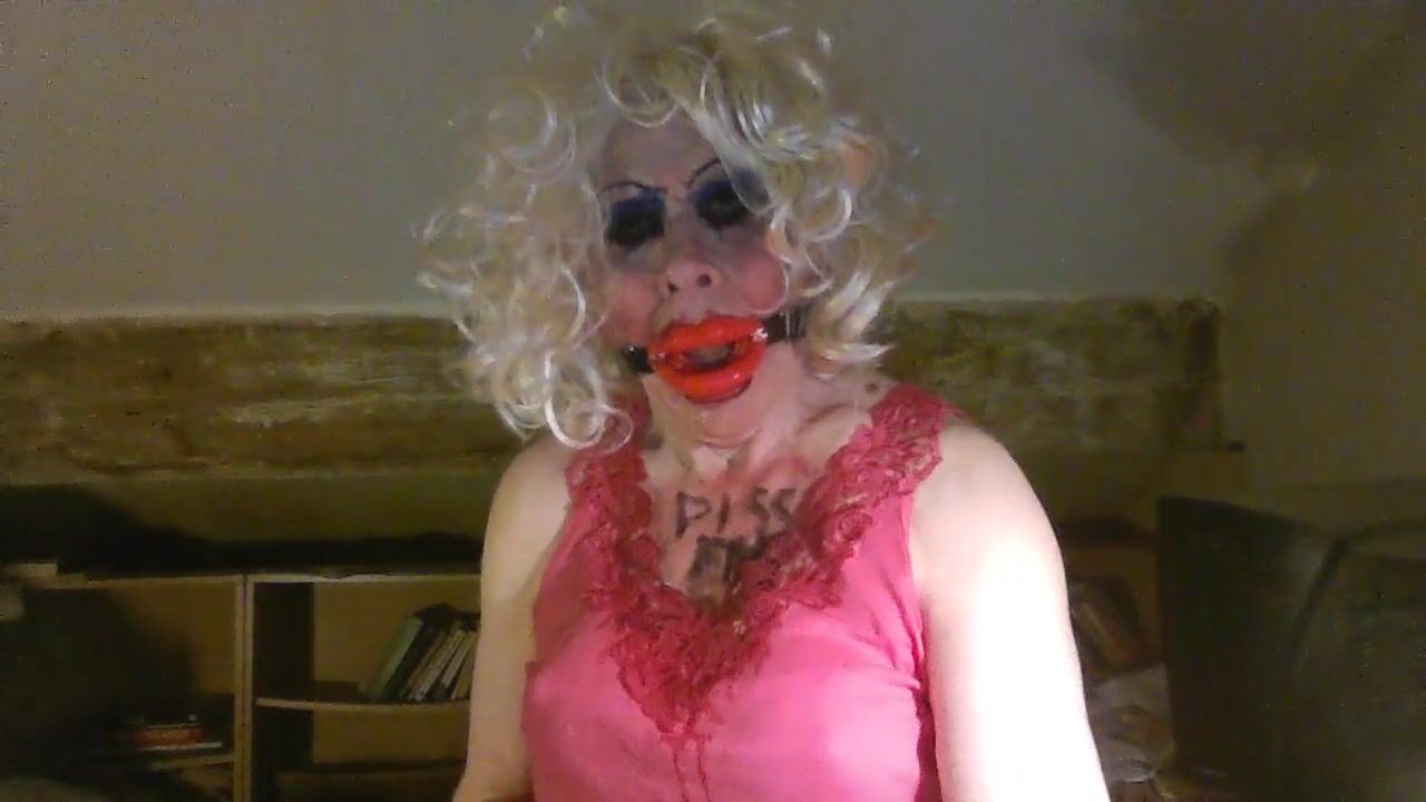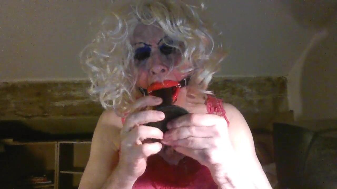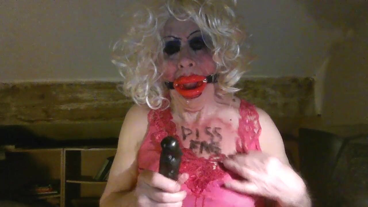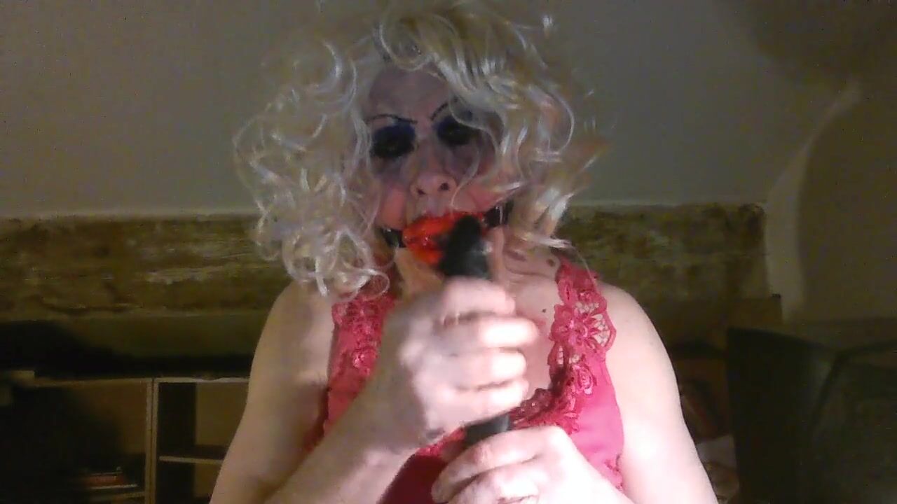 Gagged, CD sissy slut,Sarah Millward, wannabe MILF, wanks, craves humiliation and cock - your cock, and your cum in her face