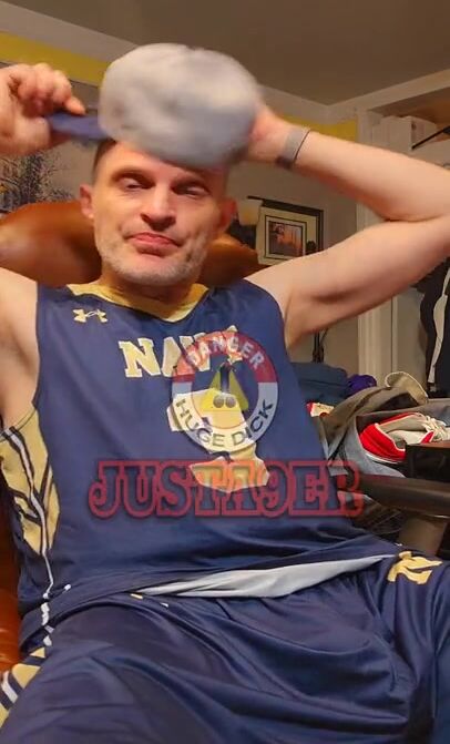 Justa9er Huge Bulge in Navy Basketball Shorts