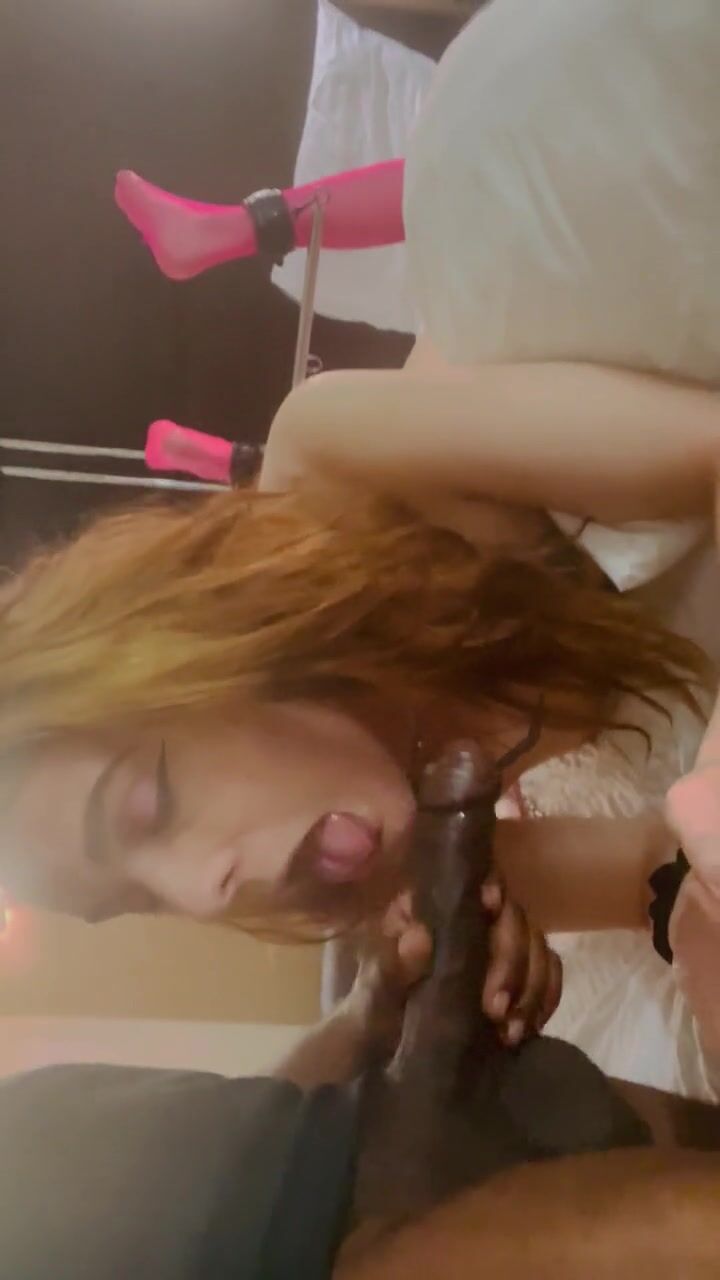 Sexy Trans Shemale Sucks Big Cock and Rides it in Public - Ai Generated